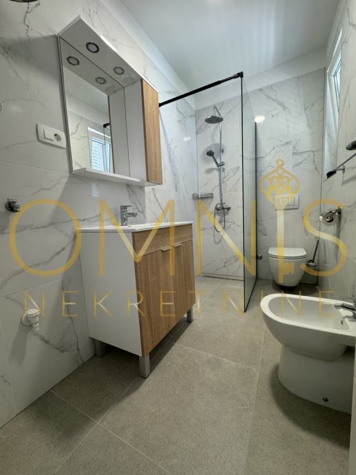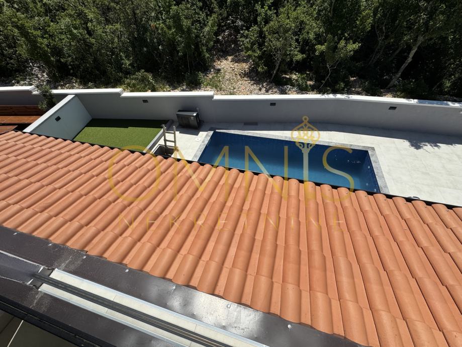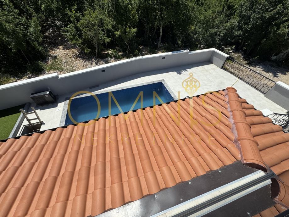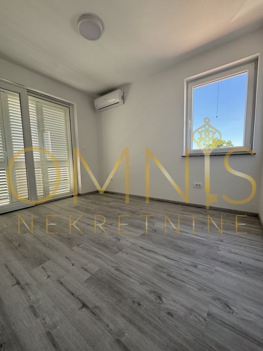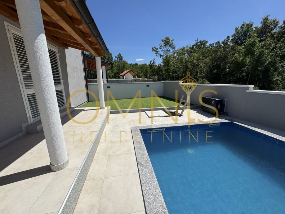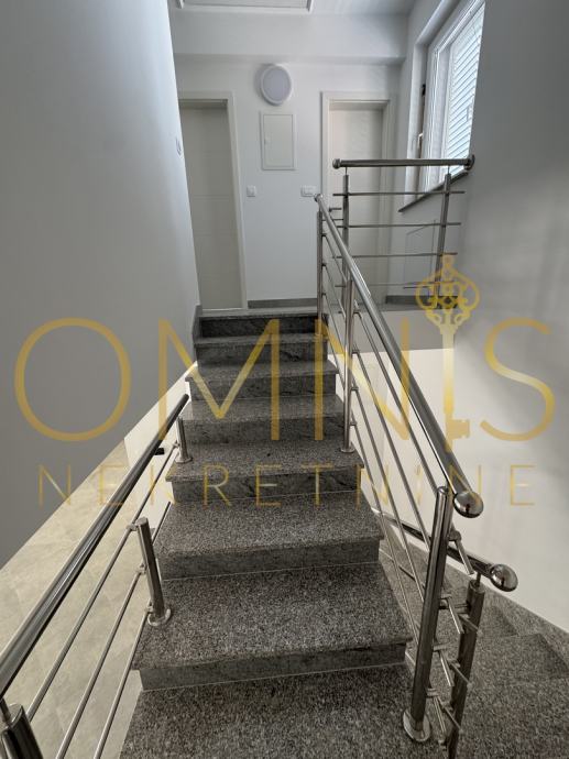 Prodajemo odličnu dvojnu kuću nedaleko od mora i samog centra. Sastoji se od dvije etaže. Na prvoj etaži se nalazi dnevni boravak s kuhinjom open space koncepta,sanitarni čvor te izlaz na terasu. Unutarnjim stepeništem se ide na prvi kat na kojem se nalaze dvije spavaće sobe, balkon te kupaonica s sanitarnim čvorom. Na okućnici kuće se nalazi više parkirnih mjesta, uređena okućnica te grijani bazen. Kuća je opremljena kvalitetnim materijalima te je grijanje putem klima uređaja. Odlična nekretnina nedaleko od svih sadržaja par minuta pješice od centra i mora.