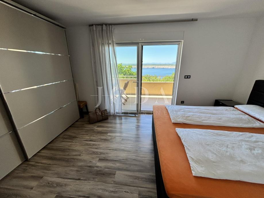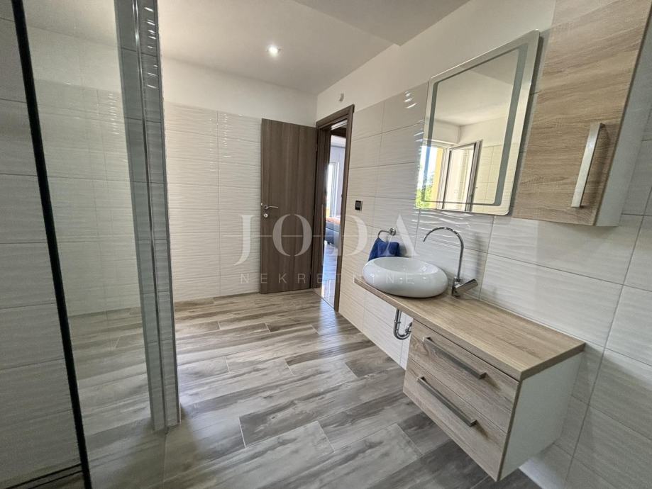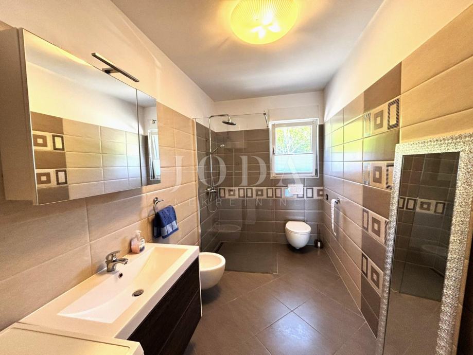 Unutarnjim stubištem dolazi se na kat gdje su smještene dvije dodatne spavaće sobe, od kojih jedna ima izlaz na natkriveni balkon s očaravajućim pogledom na more. Na katu se nalazi i druga kupaonica, opremljena tuš kabinom i kadom.