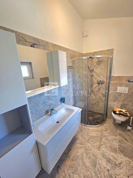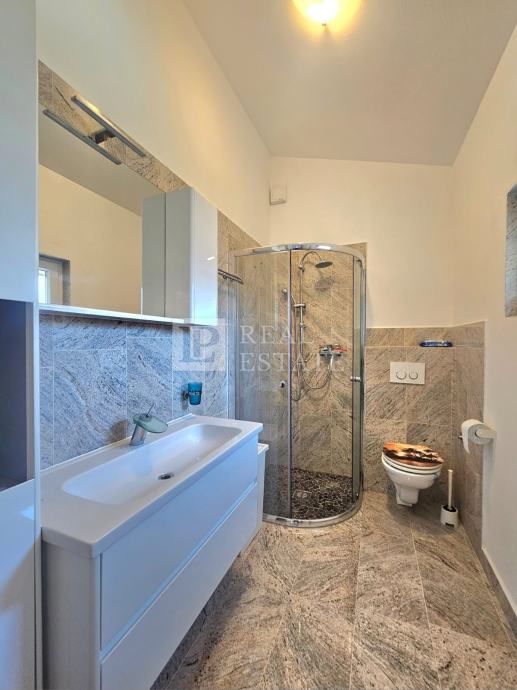 Stan čine prostrani dnevni boravak, blagovaonica, kuhinja, kupaonica, toalet i čak tri spavaće sobe. Dvije spavaće sobe su južne orijentacije dok je ona najveća smještena prema sjeveru. Iz dnevnog prostora se izlazi na predivan balkon s otvorenim pogledom na more.