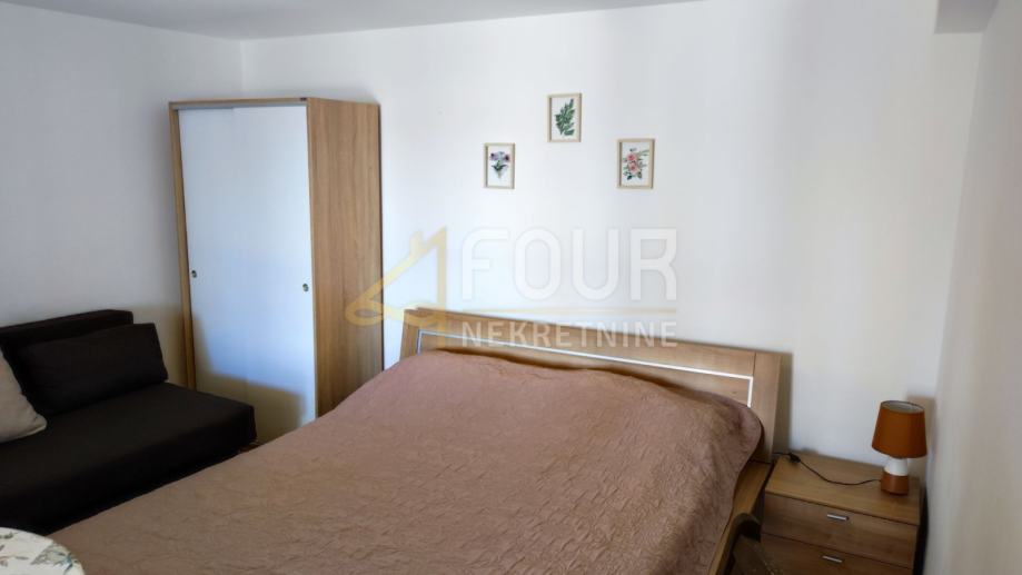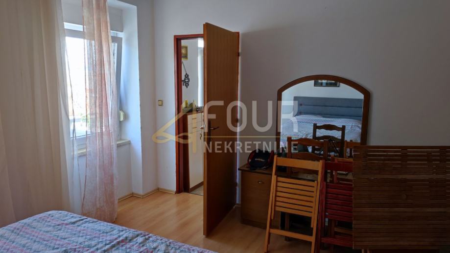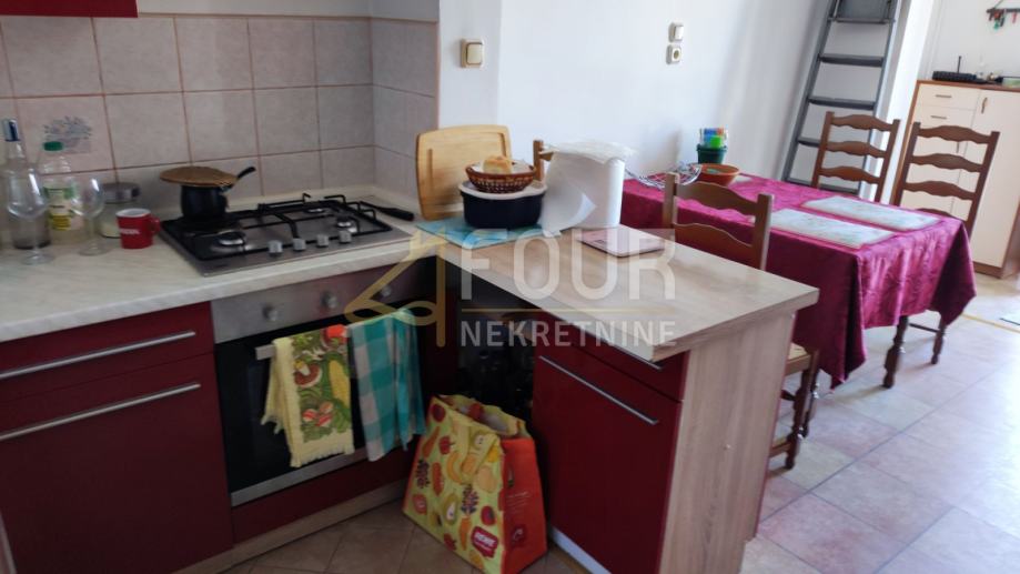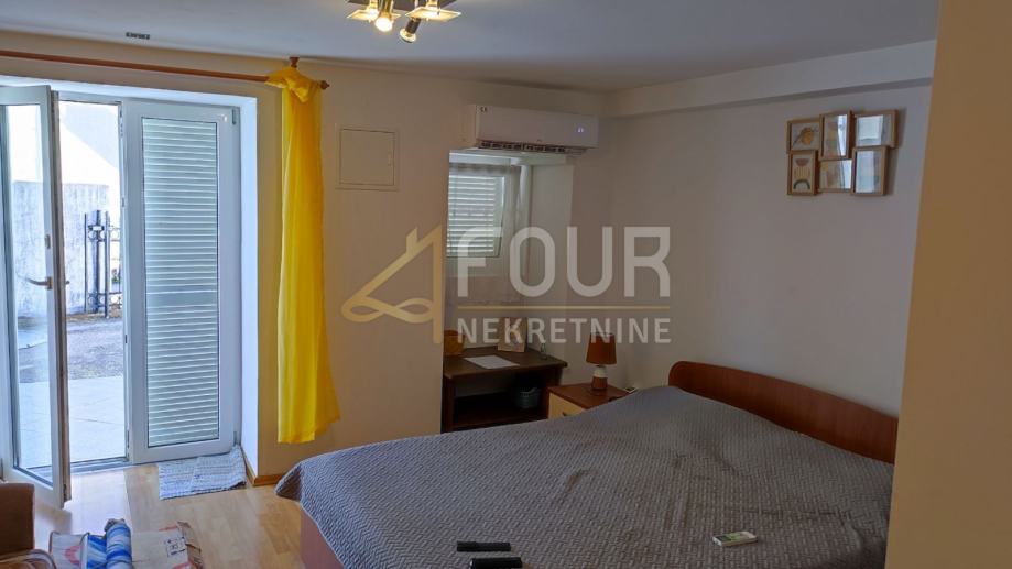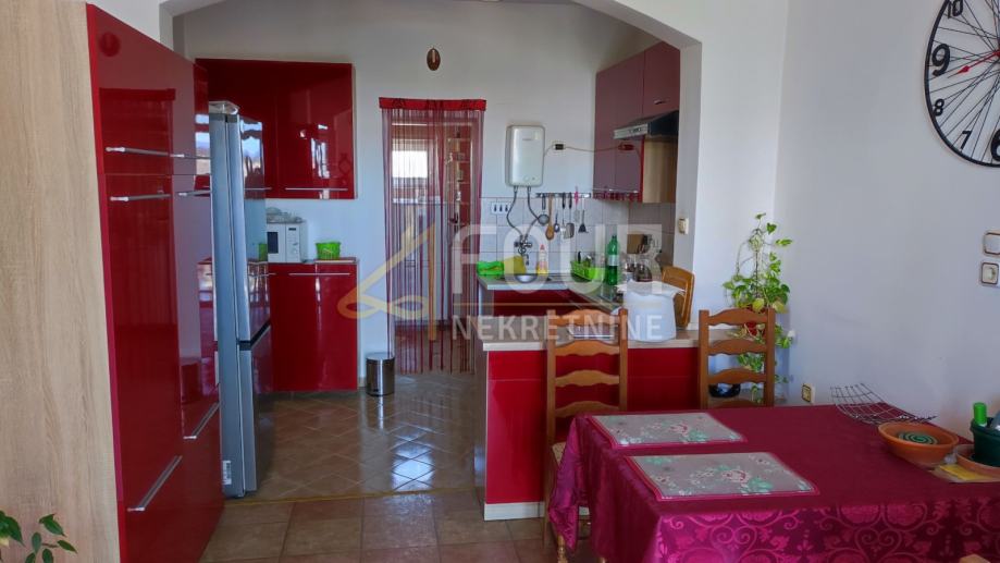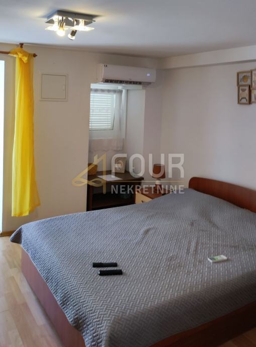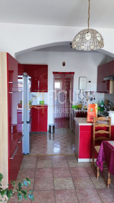 U ponudi je samostojeća kuća s tri apartmana, ograđenom okućnicom od 460m2 i pogledom, udaljena samo 150m od prve plaže.
