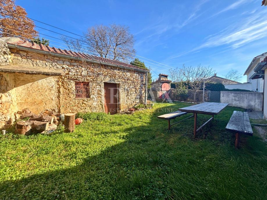 Okućnica nudi brojne sadržaje za ugodan boravak – natkrivenu terasu, zidani roštilj, prostor za opuštanje i objedovanje na otvorenom, te dodatnu pomoćnu zgradu koja se koristi kao ostava, s mogućnošću prenamjene. Unutar parcele osigurana su tri parkirna mjesta, što predstavlja veliku prednost u sezoni. Kuća je u potpunosti namještena i opremljena za boravak bez dodatnih ulaganja.