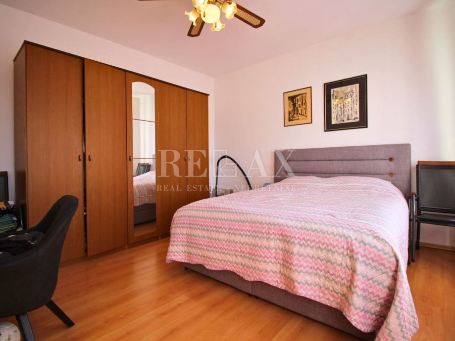 U prizemlju se nalaze dva studio apartmana, dok se na katu nalazi stan koji uključuje dnevni boravak, kuhinju s blagovaonicom, dvije spavaće sobe, kupaonicu te balkon s otvorenim pogledom na more i most koji spaja otok Krk s kopnom. Nekretnina je orijentirana prema jugozapadu, što osigurava obilje prirodne svjetlosti tijekom cijelog dana.