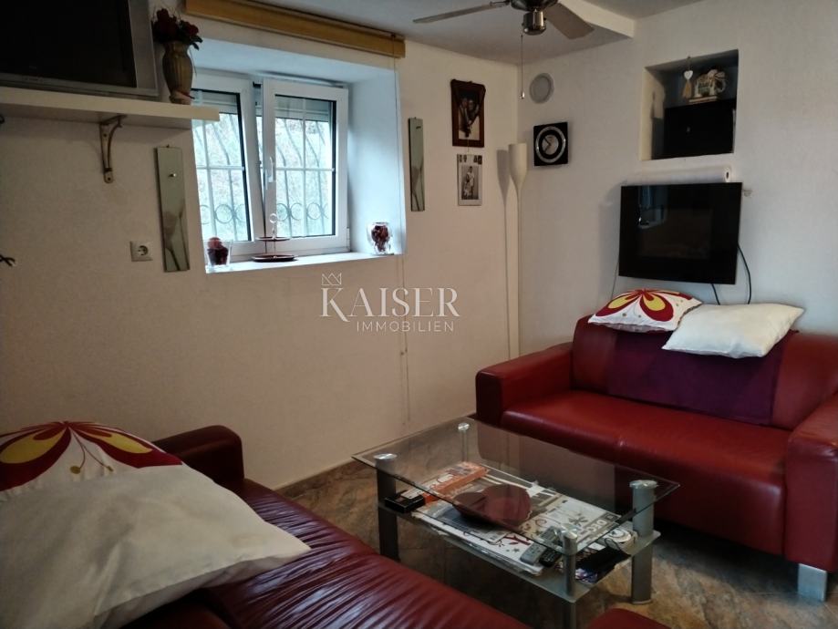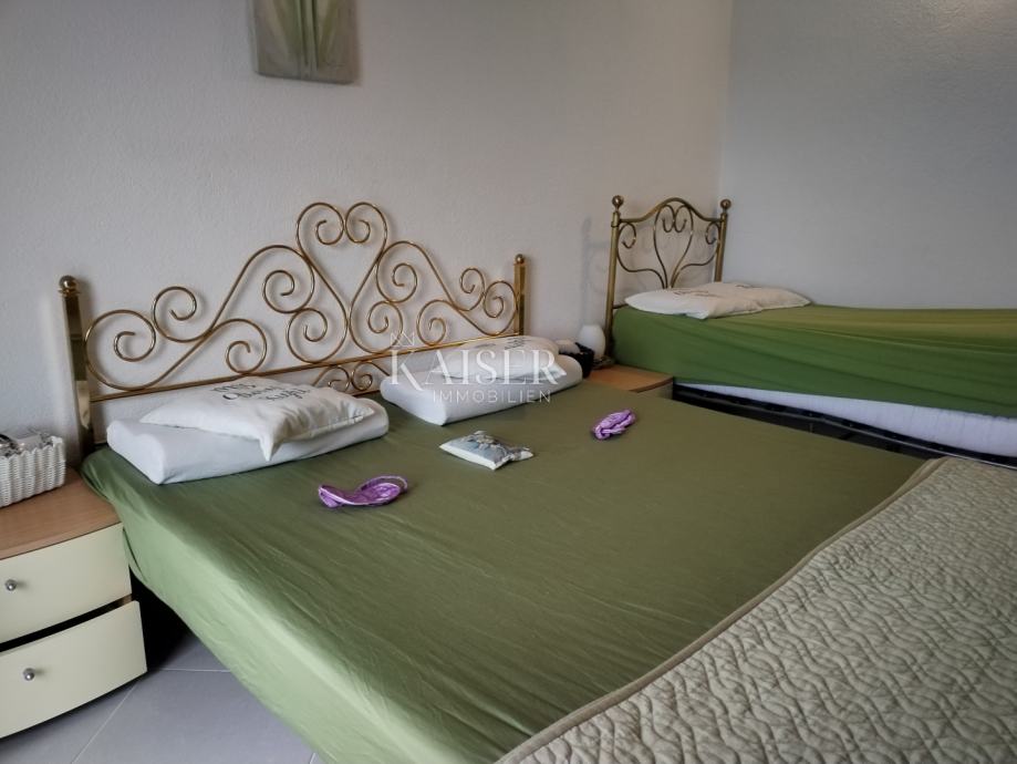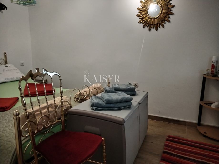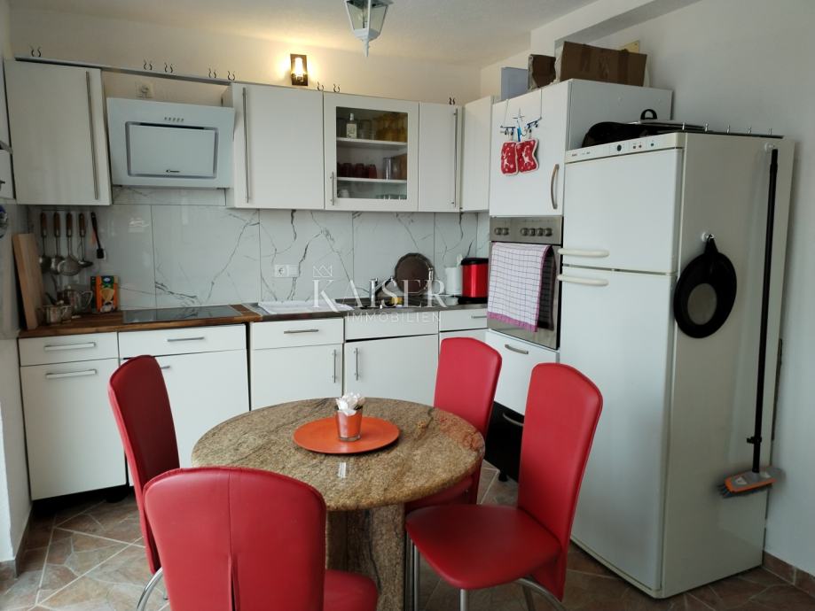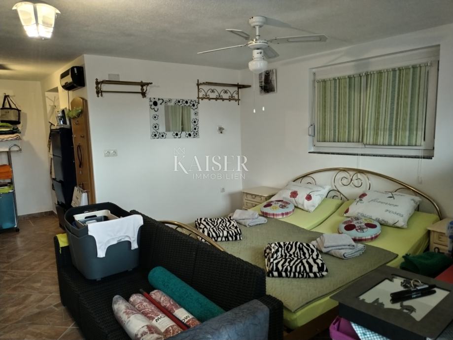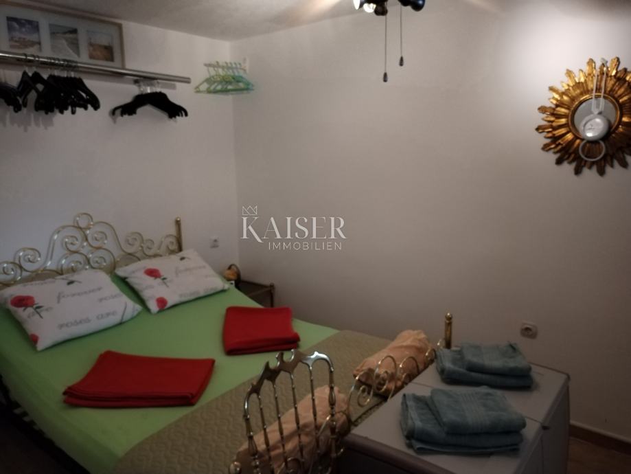 Kaiser Immobilien vam predstavlja samostojeću kuću s pogledom na more, na vrlo lijepoj i mirnj lokaciji u Jadranovu. Nekretnina je smještena u blizini centra a opet okružena zelenilom i prirodom tako da posjeduje poseban šarm i intimu. Sastoji se od prizemlja i kata. Na prizemlju su smješteni studio apartman od 35 m2, i stan od 70 m2 koji se sastoji od hodnika, sobe, dnevnog boravka, kuhinje, kupaonice, i velike verande. Vanjskim stepeništem se dolazi na prvi kat gdje je smješten stan koji se sastoji od hodnika, dvije spavaće sobe, kupaonice, ostave, dnevnog boravkai kuhinje te terase of 30 m2. Okućnica je velika, a parkirnih mjesta ima za 6 auti. Kuća je kompletno adaptirana i uređena iz unutra, a vani je ostao dio fasade i okućnica za urediti. Nekretnina vrijedna svake pažnje, obziorom da ima tri odvojene stambene jedinice, veliku okućnicu pa se može izgraditi bazen po želji, i osjećaj potpune intime. Svjetla i osunčana nekretnina, u kojoj je ugodno boraviti. Lijepo okruženje. Do mora oko sedamsto metara. Slobodno kontaktirajte svoju agenticu.