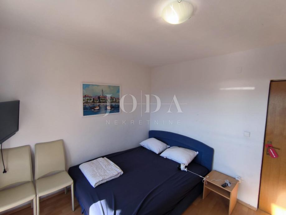 Stan se nalazi na prvom katu zgrade sa dva kata. Trosobni klasični stan od kojeg dvije sobe gledaju na jugo istok i imaju izlaz na prostrani natkriveni balkon sa kojeg se pruža pogled na Krk i cijelu rivijeru. Treća manja soba ima izlaz na manji balkon na sjevernu stranu. Ispred stana još jedna terasa sa roštiljem a jedno parkirno mjesto se nalazi u sklopu okućnice. Uređen stan veličine 43m2, kuhinja rađena po mjeri, grijanje na radijatore te instalirani klima uređaj za grijanje i hlađenje.