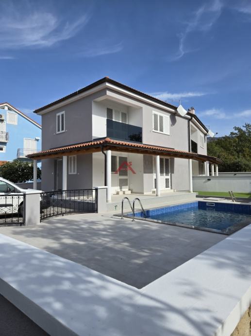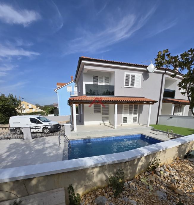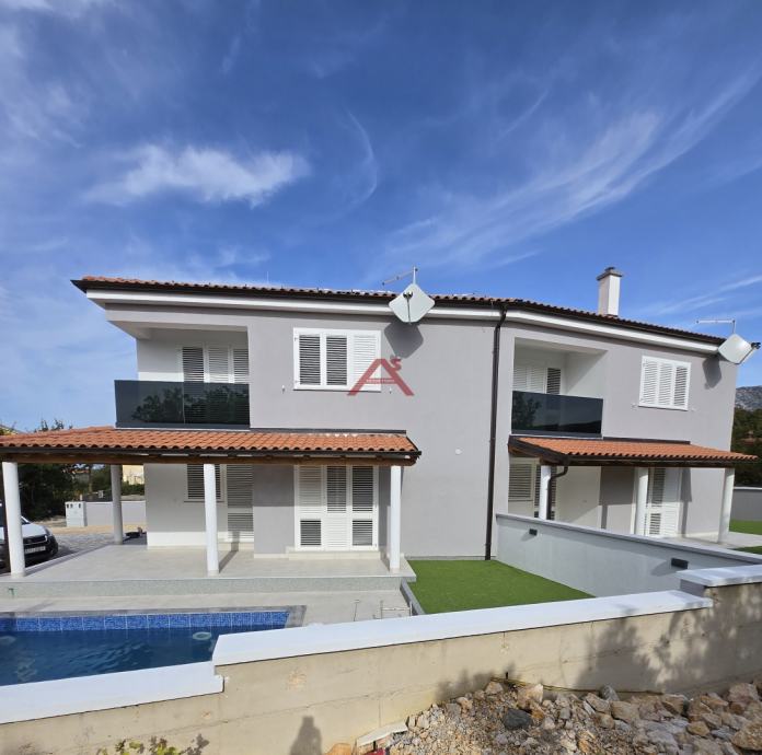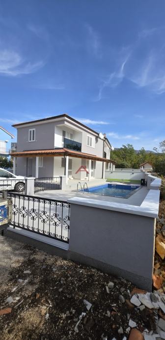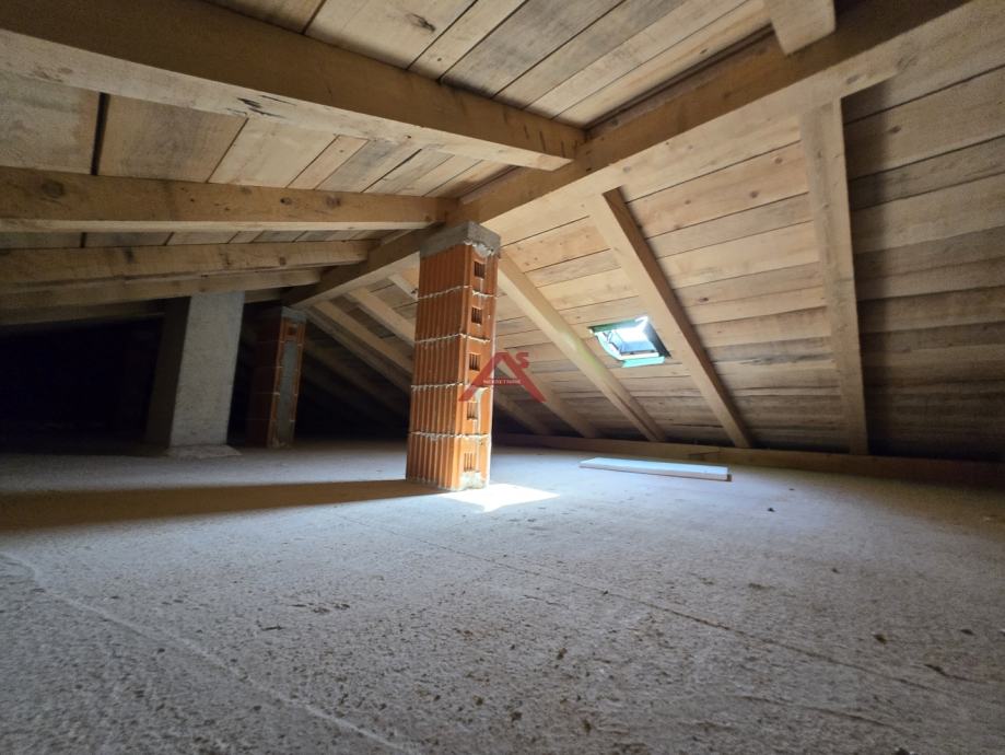 Dvoetažna gradnja, u prizemlju ima dvije spavaće sobe, DB s kuhinjom, prostranu kupaonu, natkrivenu terasu sa izlazom na bazen i sunčalište, hodnik sa stubištem za gornju etažu. dok se na katu nalazi hodnik, spavaće sobe, kupaonica i terase. Kompletno potkrovlje kuće je uređeno za spremište.