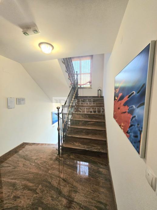 Pri ulazu u vilu nalazi se recepcija. U prizemlju su prostran dvosobni apartman te pomoćne prostorije kao što su kuhinja, kotlovnica, praonica rublja, garderoba i sanitarije za zaposlenike, čime ova nekretnina posjeduje sve što je potrebno za bavljenje turističkom djelatnošću. Na prvom i drugom katu te u visokom potkrovlju je još deset potpuno opremljenih apartmana s vlastitim terasama s kojih se pruža fantastičan pogled na morsko plavetnilo.