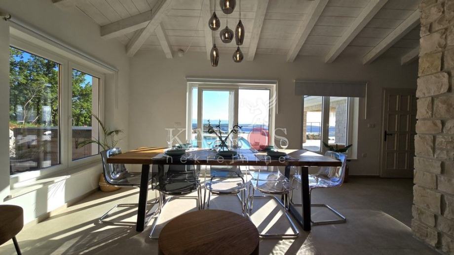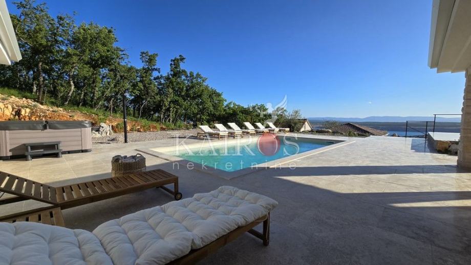 JADRANOVO (Crikvenica), prodajemo prekrasnu modernu vilu s božanstvenim pogledom na more, okružena prekrasnom prirodom. Vila ima površinu od 192 m2, a u njoj se može smjestiti osam osoba u tri spavaće sobe s bračnim krevetima. Ima četiri kupaonice s modernim tuš kabinama.