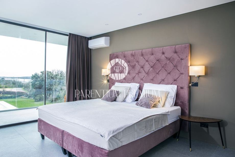 Na katu se smještaju tri suvremeno uređene spavaće sobe, obasjane svjetlom i prozračne zahvaljujući staklenim površinama, pružajući prekrasan pogled na more i otoke. Klima uređaji u svim prostorijama, zajedno s podnim grijanjem, osiguravaju optimalnu udobnost tijekom cijele godine.