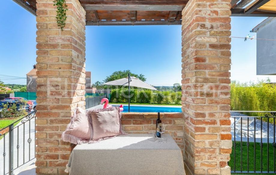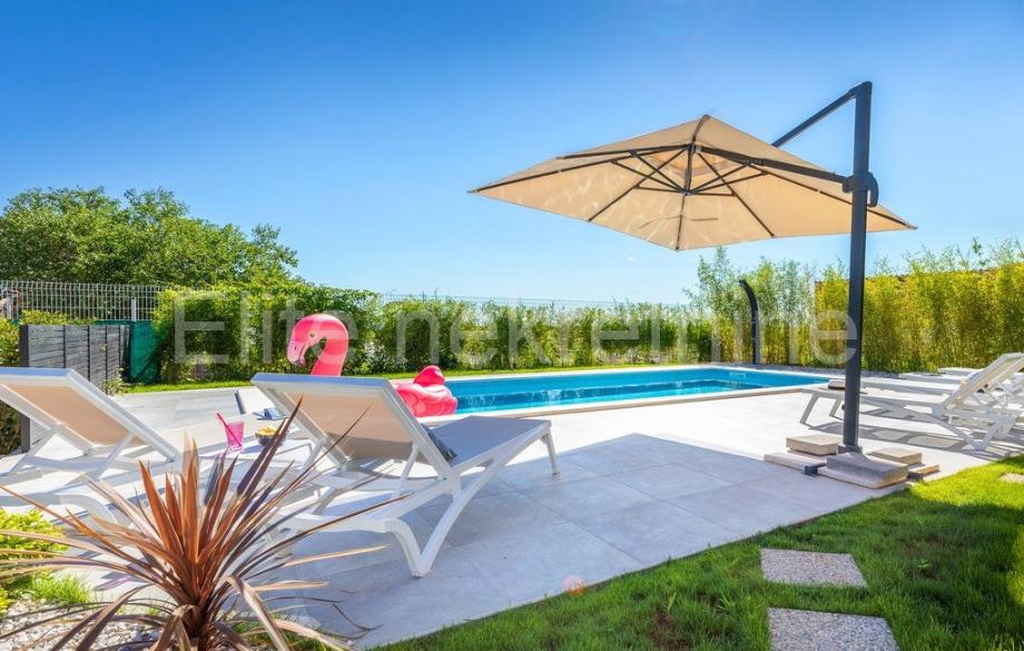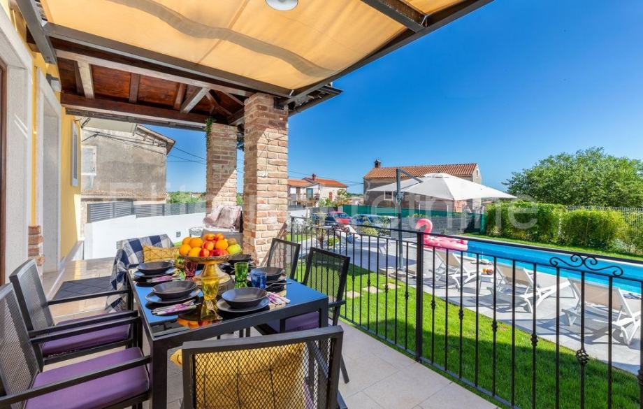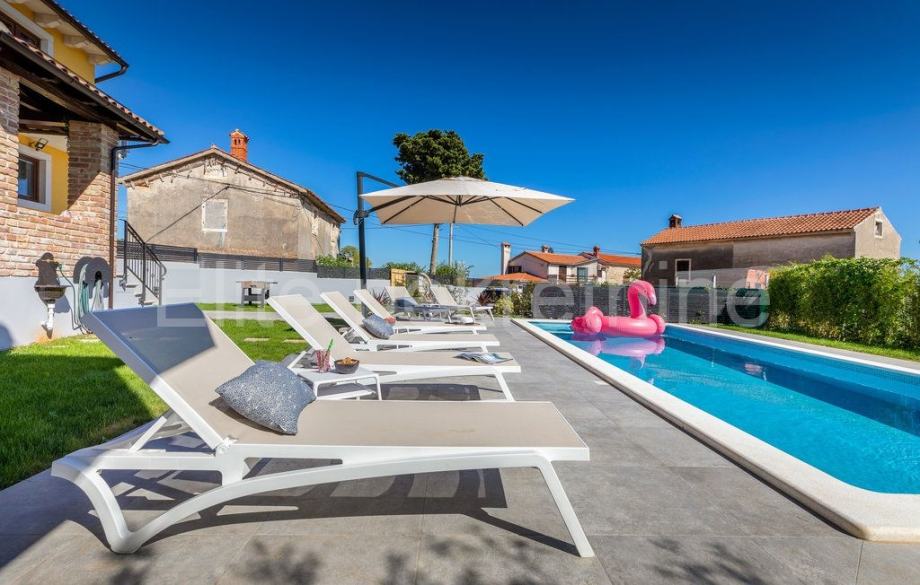 Ližnjan - prekrasna kuća 140 m2, 2 etaže, prostrana okućnica, bazen i sunčalište, vrijedno pažnje, kategorizirana za turistički najam sa uhodanim poslom!