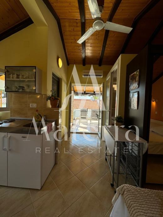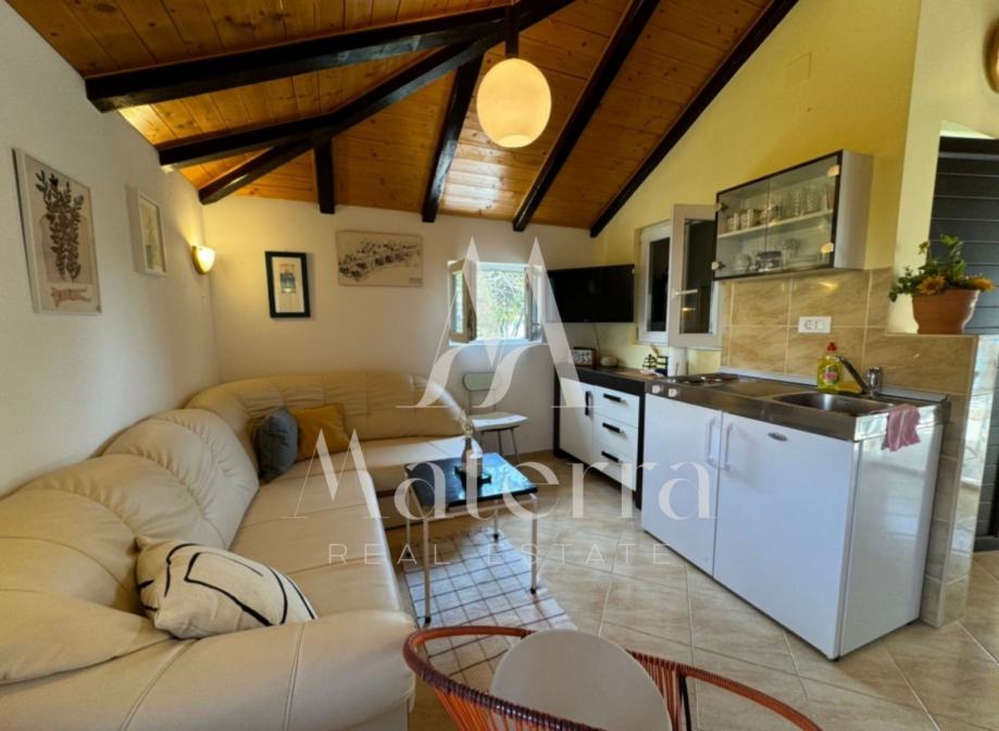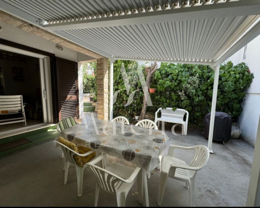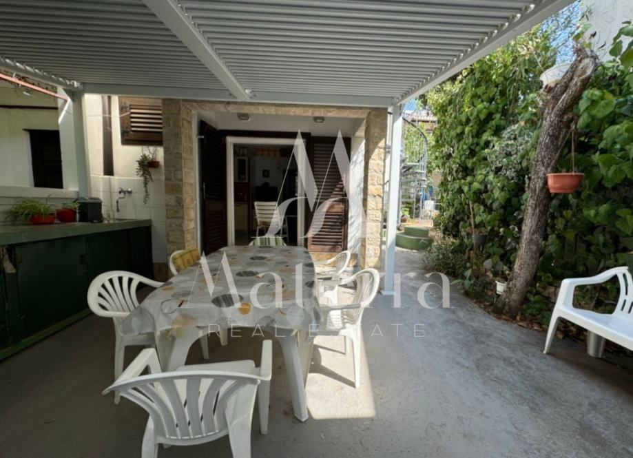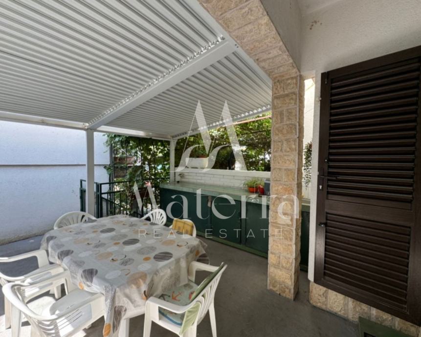Cijela kuća je održavana sa prostranom okućnicom cca 80m2, te se gornji stan ljeti koristi za turistički najam duži niz godina.