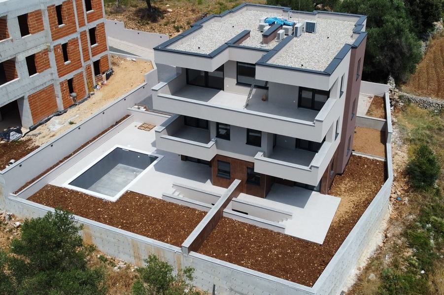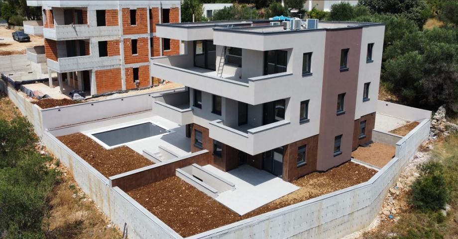 Prodaje se trosobni apartman (A2) ukupne neto površine 63,79 m2 na I katu novogradnje sa samo pet stanova u Jakišnici na otoku Pagu.