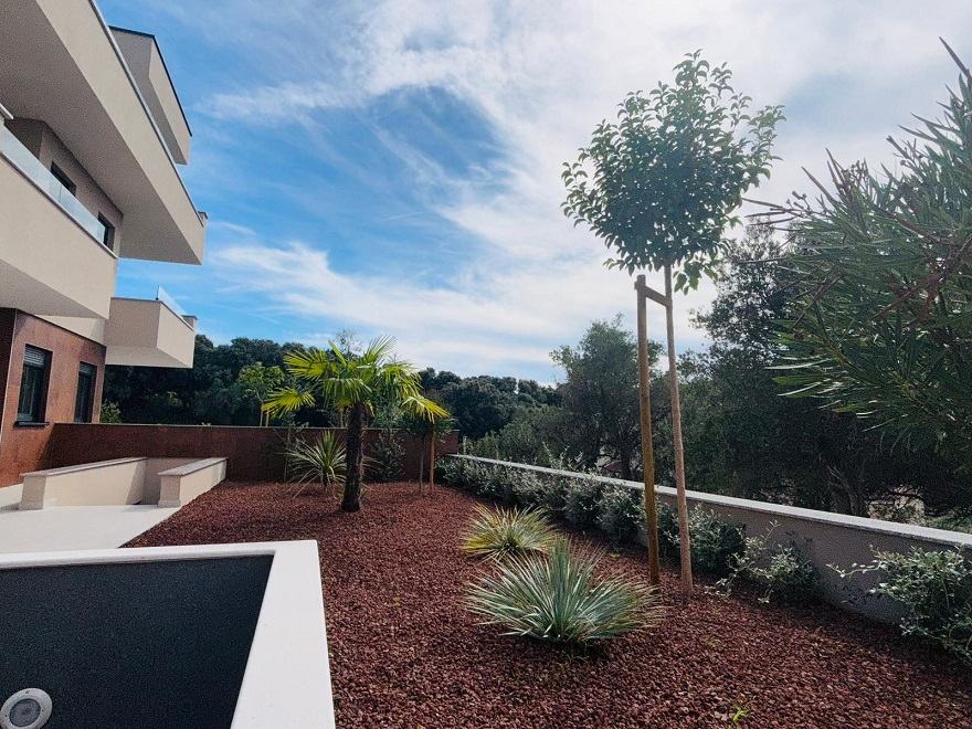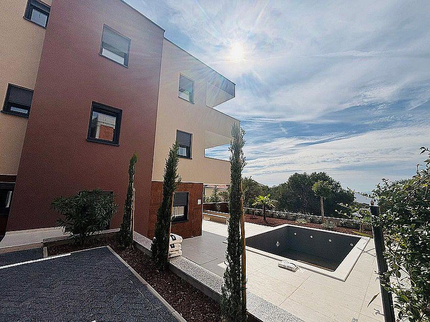 Prodaje se trosobni apartman (S1) ukupne neto površine 122,74 m2, s bazenom i vrtom u prizemlju novogradnje sa samo pet stanova u Jakišnici na otoku Pagu.