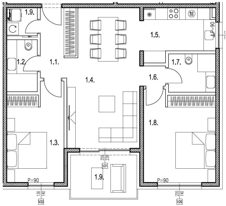 - Ravni krov s betonom u padu, parna brana, toplinska izolacije te hidroizolacijska membrana.