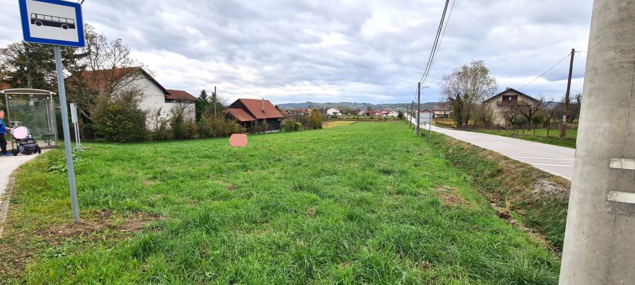 Jakovlje, građevinska parcela uz glavnu cestu od 850m2 širine 27metara. sve komunalije do parcele.