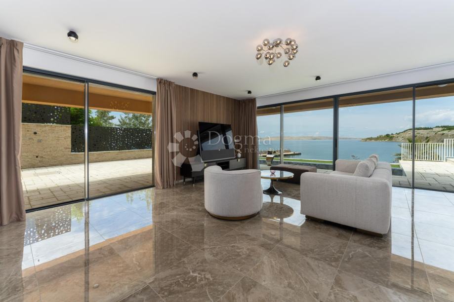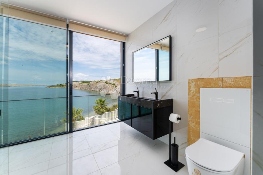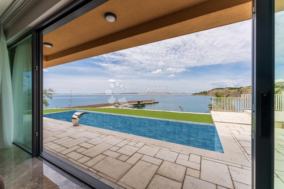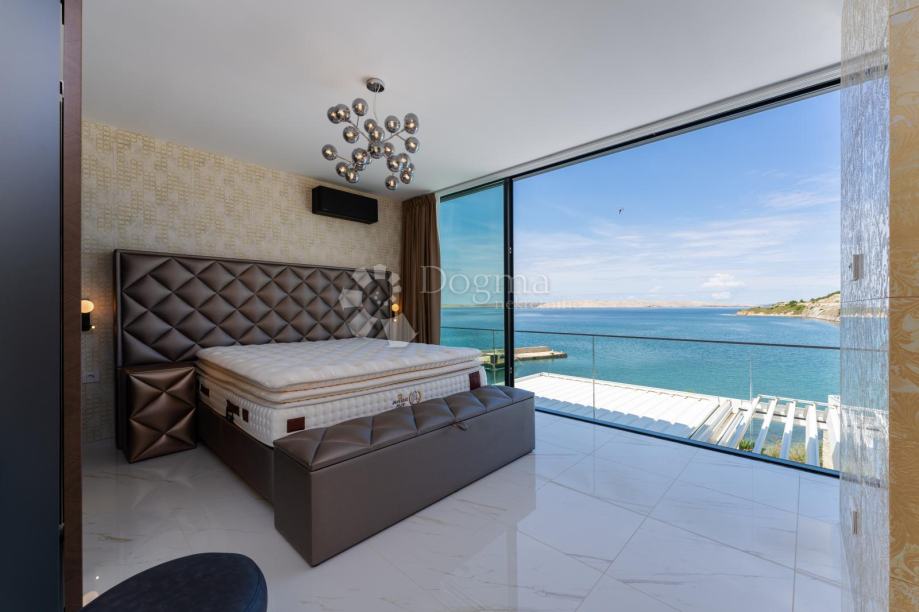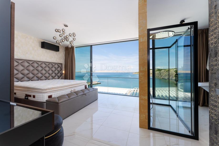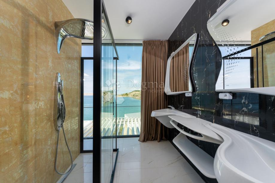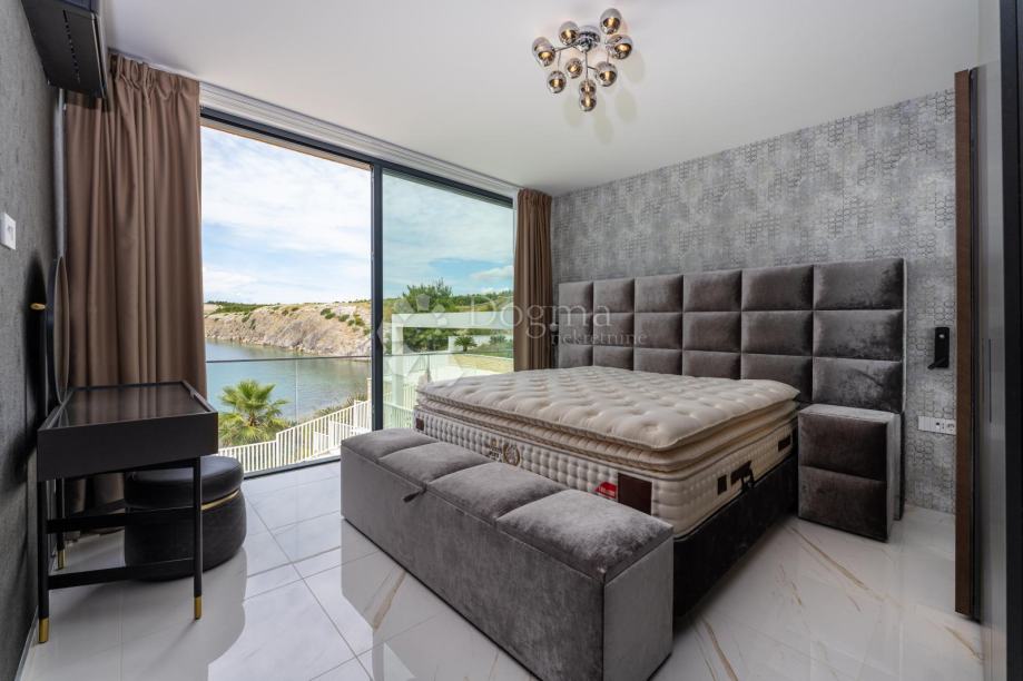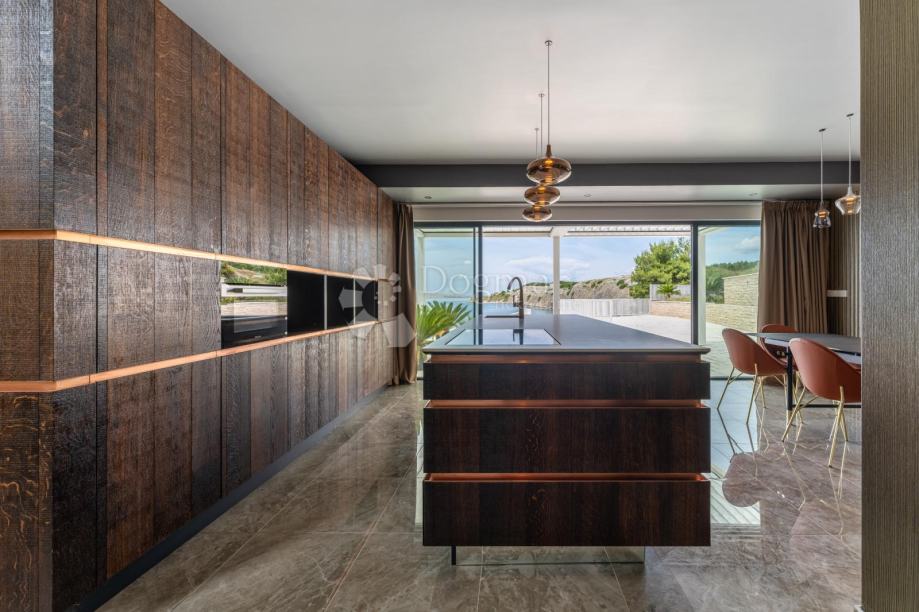 Vila je u 1. redu do moru i projektirana tako da se 180 stupnjeva oko Vas otvara azurno plavetnilo unedogled. Po cijeloj ogradi koja okružuje imanje je lijepljen brački kamen, a stepenište vodi direktno s terase vile na plažu, gdje imate i svoj vez za brod. Prizemlje se sastoji od dnevnog boravka s izlazom na dvije terase, od koje je na jednoj grijani bazen, a sve unaokolo je prostor za druženje, sjedenje vani na otvorenom ili sunčanje. Nadalje, tu je unikatna kuhinja rađena po mjeri sa prostranom blagovaonicom i wc. Na katu su spavaće sobe, sveukupno 4 s izlaskom na vanjski prostor i 3 kupaonice. Vila ima 357 m2, a parcela na kojoj je smještena ima 1341 m2.