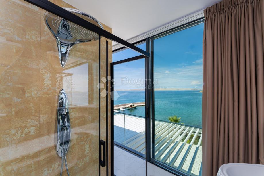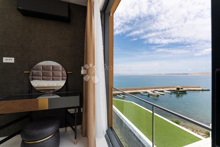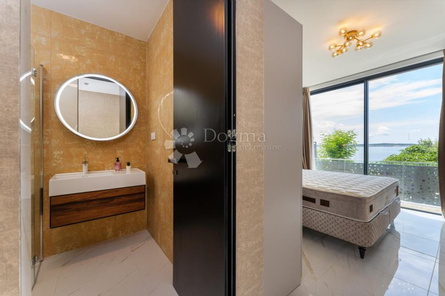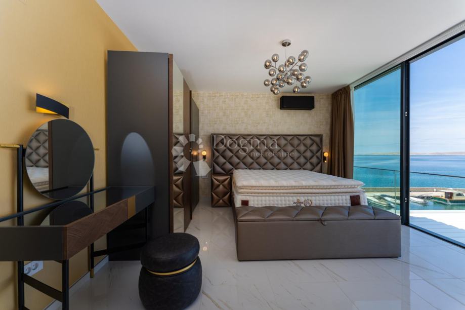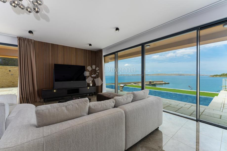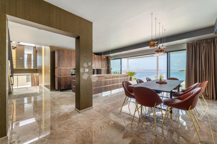 The villa is in the 1st row to the sea and designed so that 180 degrees around you azure blue opens up indefinitely. The fence surrounding the property has Brač stone all over it, and the staircase leads directly from the terrace of the villa to the beach, where you have your own boat mooring. The ground floor consists of a living room with access to two terraces, one of which has a heated swimming pool, and everything around it is a space for socializing, outdoor seating or sunbathing. Furthermore, there is a unique custom-made kitchen with a spacious dining room and guest toilet. On the top floor, there are a total of 4 bedrooms with access to the outdoor area and 3 bathrooms. The villa has 357 m2, and the plot on which it is located has 1341 m2.