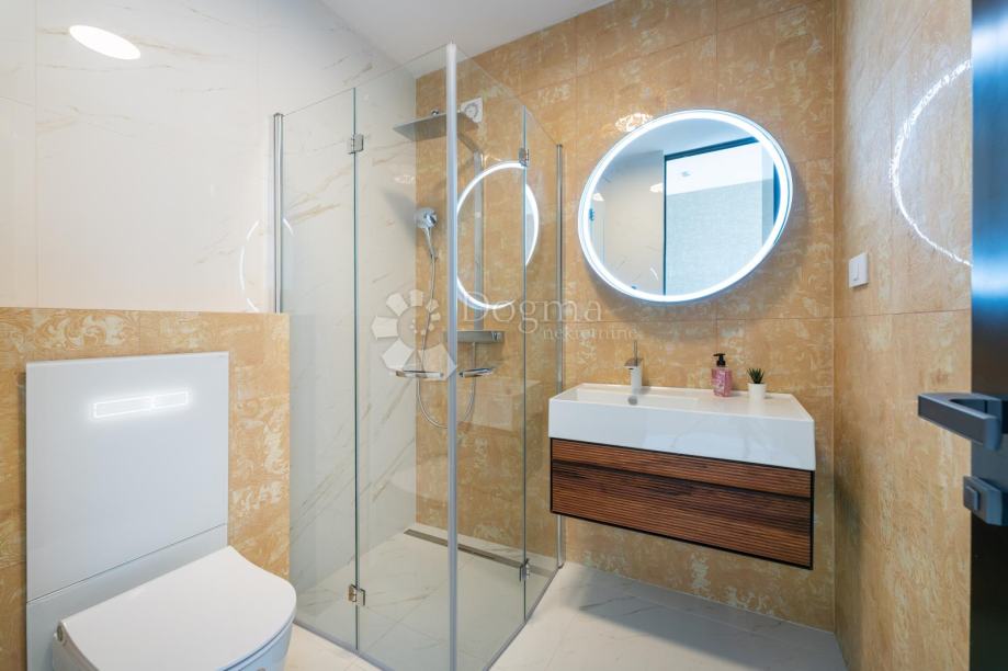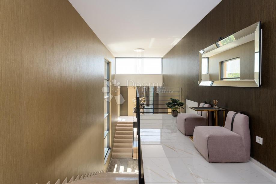 Behind the villa there is an auxiliary facility designed as a garage and a guest area, and can be adapted to both the wellness and sauna as well as the guest or service apartment. While designing the villa, a special care was taken primarily to ensure privacy, so that almost all the outer openings are facing nature, so that you have no contact with your neighbors and that you are poetically looking at the stone or the expanse of the sea, while it seems to you that there is no one there but you.