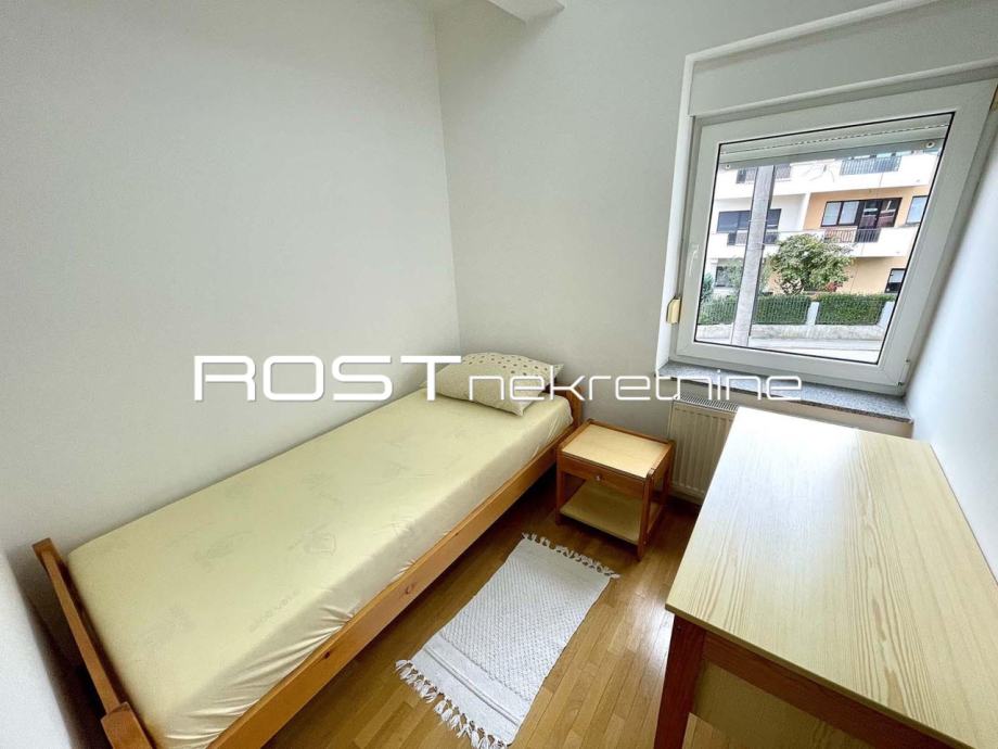 STAN SE SASTOJI od ulaznog prostora zaštićenog protuprovalnim vratima i namještenog sa ugradbenim garderobnim ormarom i komodom za obuću, kuhinje, klimatiziranog dnevnog boravka s blagovaonicom u jednoj funkcionalnoj cjelini i IZLAZOM NA BALKON, spavaće sobe s bračnim ležajem i garderobnim ormarom, treće sobe s jednostrukim ležajem i radnim stolom, kupaonice s kadom i WC-om, BALKONA (4.00 m2) i VANJSKOG PARKIRNOG MJESTA.