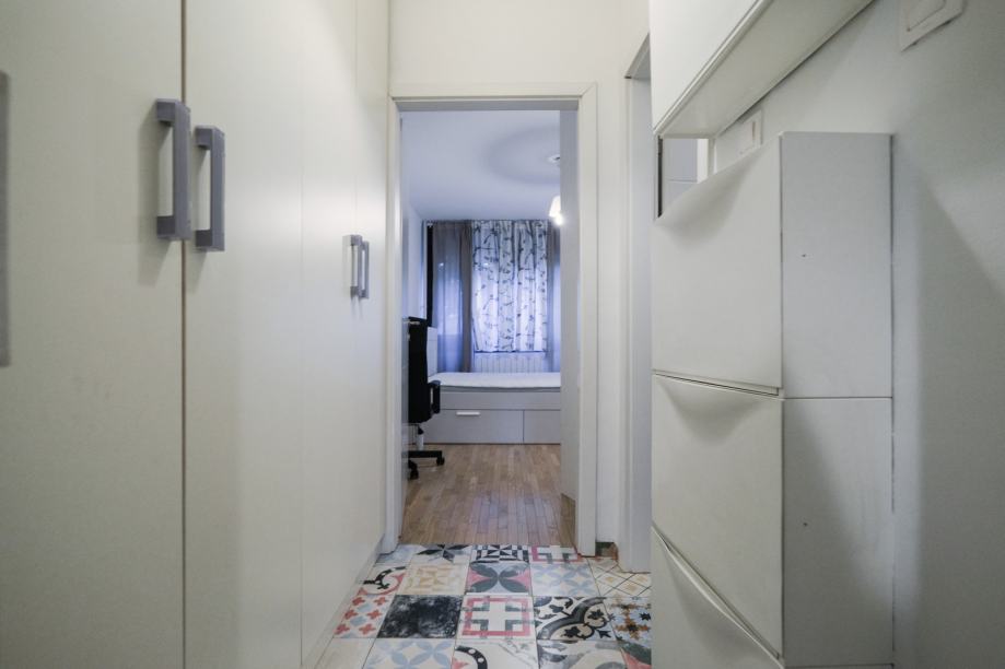 Lokacija je izuzetno praktična – u blizini se nalaze škola, vrtić, trgovine, pošta, ljekarna i ostali sadržaji, dok je autobusna stanica ispred zgrade, a tramvajska zona udaljena svega nekoliko minuta hoda. Jarunsko jezero i rekreacijske zone dostupne su u kratkoj šetnji, što dodatno podiže kvalitetu stanovanja.