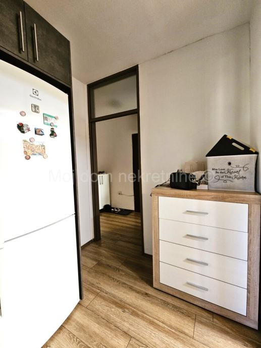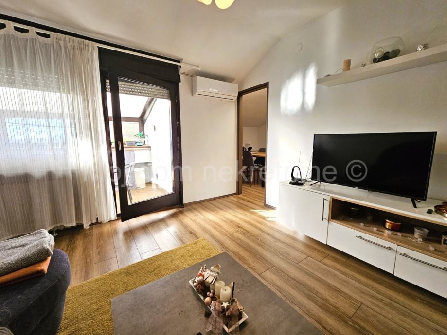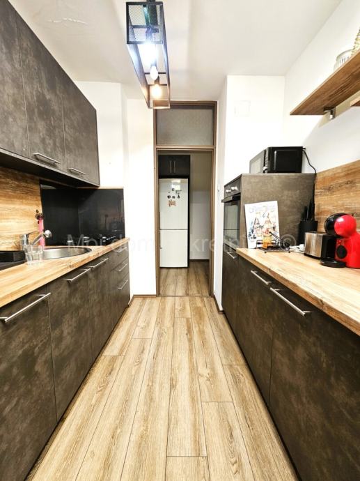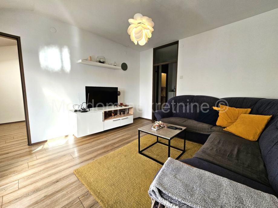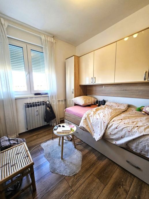 Prodaje se lijep 3 soban stan s loggiom na 5.katu zgrade s liftom. Stan je opremljen klima uređajem. Izrazito je svijetao radi svoje dvostrane orijentacije. Moguće je kupiti stan kompletno namješten. Pripada mu ostava u podrumu zgrade. Nalazi se u blizini škole, vrtića, javnog prijevoza i svih ostalih bitnih sadržaja. Energetski certifikat C.