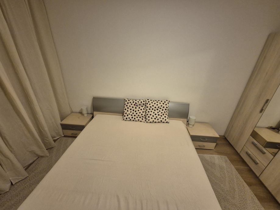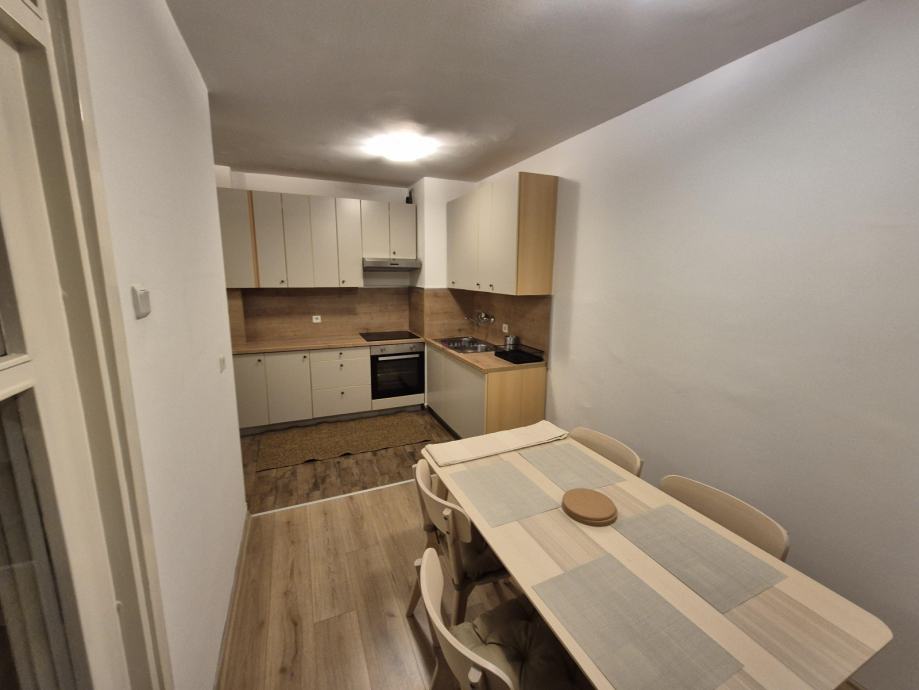 Iznajmljuje se lijepo uređen dvosoban stan na prvom katu stambene zgrade na Jarunu.Stan se sastoji od ulaznog hodnika, velike opremljene kuhinje, blagovaonice, dnevnog boravka, spavaće sobe s bračnim krevetom, kupaonice s tuš kabinom i velike lođe. Stan je kompletno novo namješten modernim namještajem i opremom.Odlična lokacija, mirna ulica u blizini tramvajske stanice, parka, atletske staze, bazena...