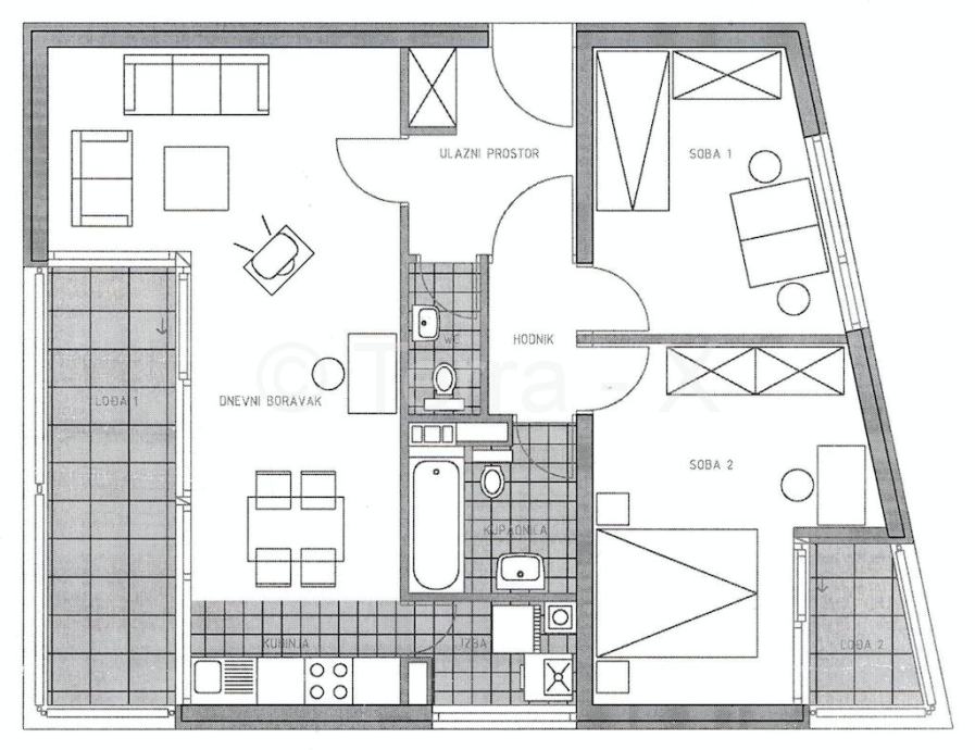- dnevnog boravka s kuhinjom i blagovaonom s izlaskom na veliku loggiu,