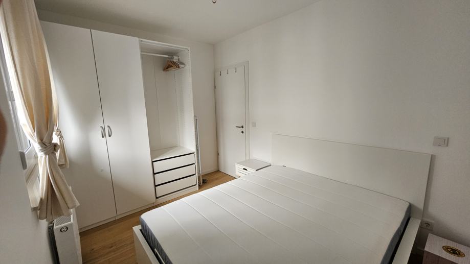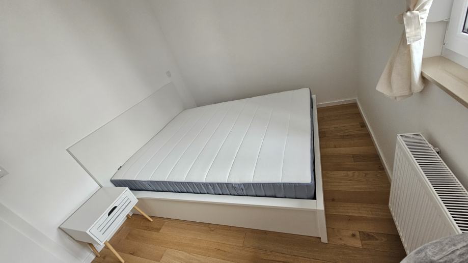 U spavaćoj sobi se nalazi veliki ormar za odlaganje odjeće, krevet dimenzija 160x200, a prozor ima ugrađeni komarnik.