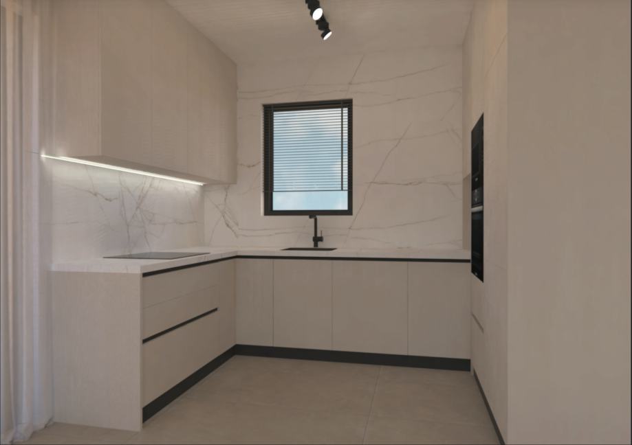 Oprema uključuje podno grijanje putem dizalice topline, klimatizaciju svih prostorija, solarnu elektranu te kvalitetnu vanjsku stolariju s električnim roletama i komarnicima.