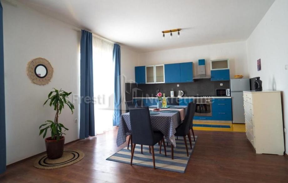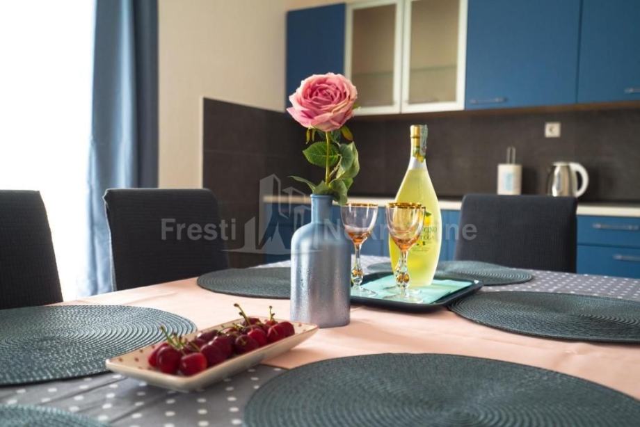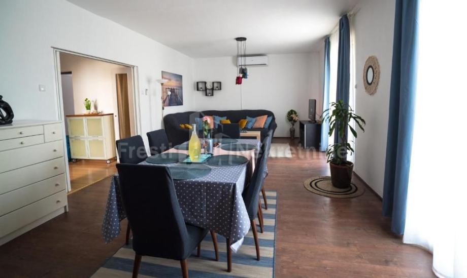 Prodaje se komforan, jako lijepo namješten stan na atraktivnoj lokaciji Jazine, Zadar. Stan se prostire na 86 m² stambenog prostora i 141m2 okućnice. Nudi savršen spoj udobnosti i funkcionalnosti. Sastoji se od prostranog otvorenog dnevnog boravka s blagovaonicom i moderno opremljene kuhinje, dvije udobne spavaće sobe, dvije kupaonice s kadom, tušem i toaletom, prostranog hodnika, opreme za roštilj i terase. Stan je kompletno opremljen kvalitetnim uređajima . Sve instalacije (struja, voda) su nove. Visokokvalitetni materijali koriste se u cijelom stanu, odlični prozori i vrata. Stan zbog svoje orijentacije obiluje sunčevom svjetlošću.