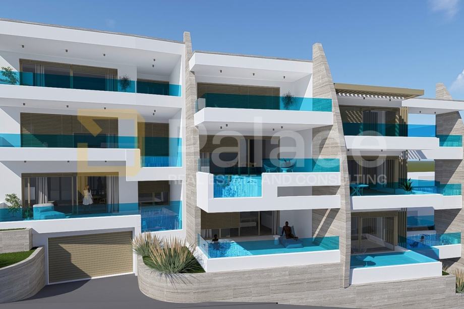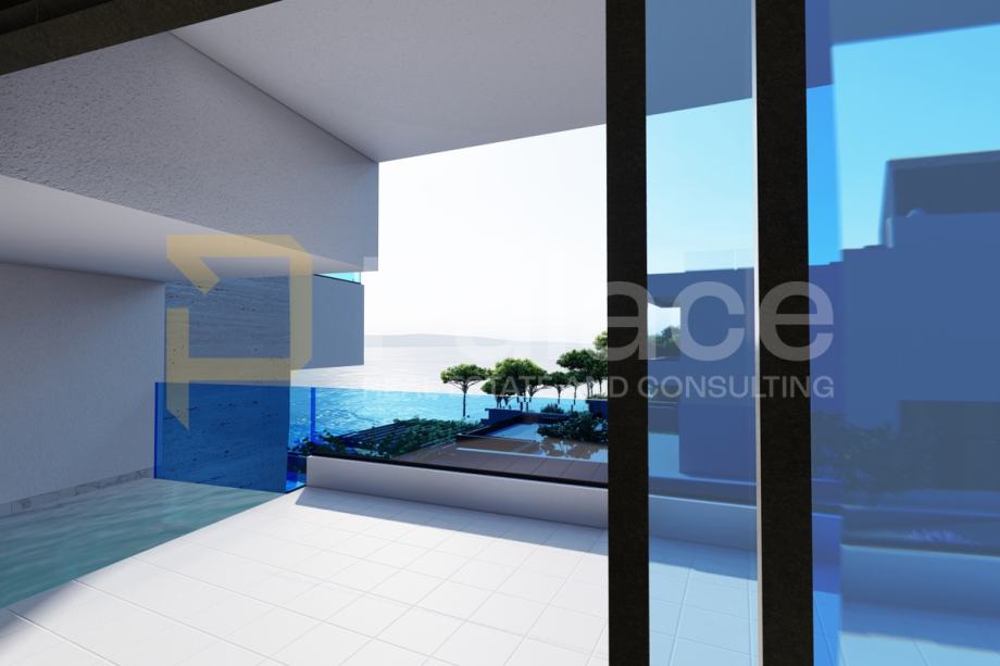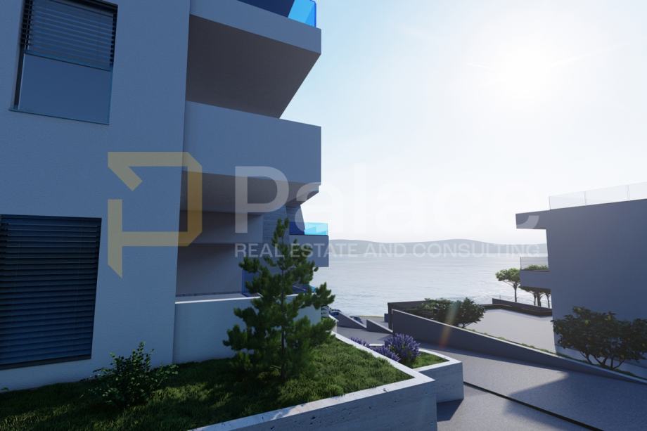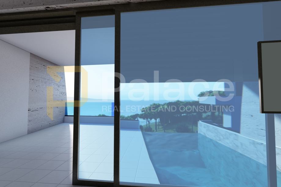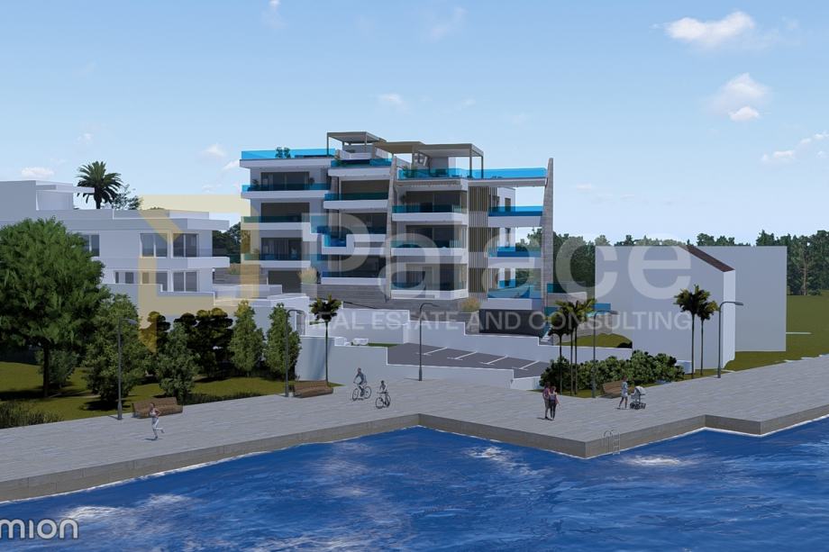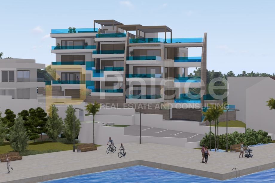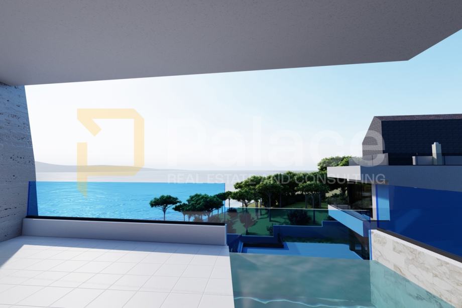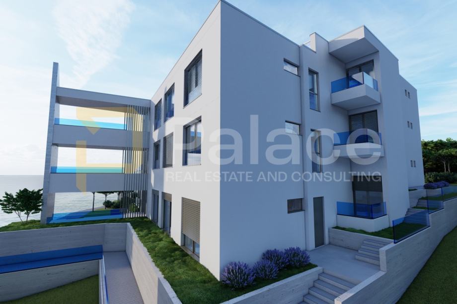 Smješten na samoj obali, svega 40 m od mora, sa privatnim bazenom i luksuznom opremljenošću, ovaj stan pruža budućem vlasniku puža maksimalnu blagodat uživanja. Zgrada se gradi po visokim standardima gradnje, kvalitetnim materijalima, a između ostalog stanovi su opremljeni PVC stolarijom sa velikim kliznim stijenama, klimatiziranim prostorijama, električnim roletama s komaricama, podnim grijanjem itd. Cijela zgrada povezana je s liftom.