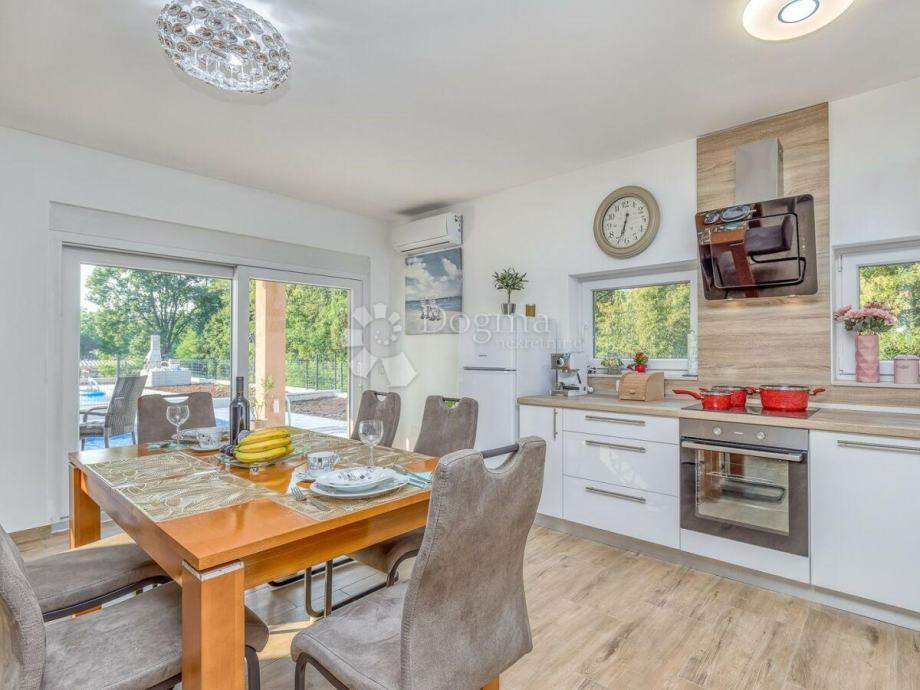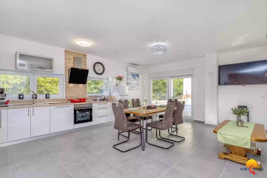 Prizemlje svake kuće organizirano je u open space konceptu, obuhvaćajući prostrani dnevni boravak, kuhinju, blagovaonicu, kupaonicu i ostavu. Iz dnevnog boravka pruža se izlaz na terasu i bazen, stvarajući ugodan prostor za odmor i druženje. Na katu se nalaze dvije spavaće sobe, kupaonica te vešeraj.