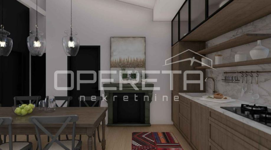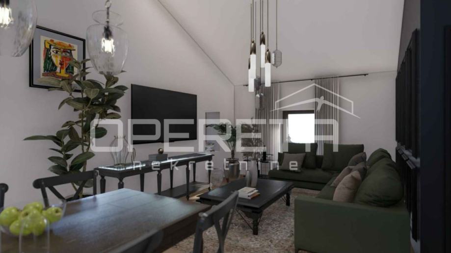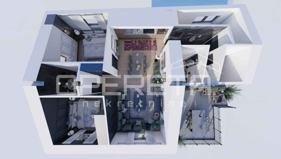 Nekretnina se prodaje nenamještena, a slike u oglasu prikazuju idejno rješenje 3D modela interijera, što Vam omogućuje uvid u potencijal prostora i mogućnost prilagodbe prema vlastitim željama.
