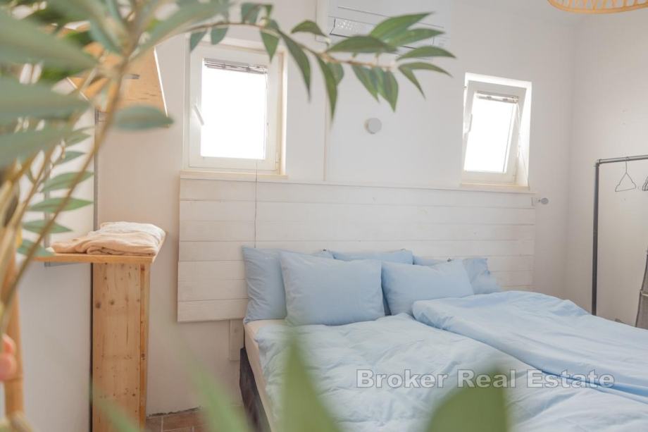 Električna energija se dobiva putem solarnih panela, a voda iz spremnika za vodu, što osigurava potpunu samoodrživost. Ova nekretnina predstavlja rijetku priliku za ulaganje u turizam ili kao privatno utočište na jednom od najljepših dijelova Jadrana.