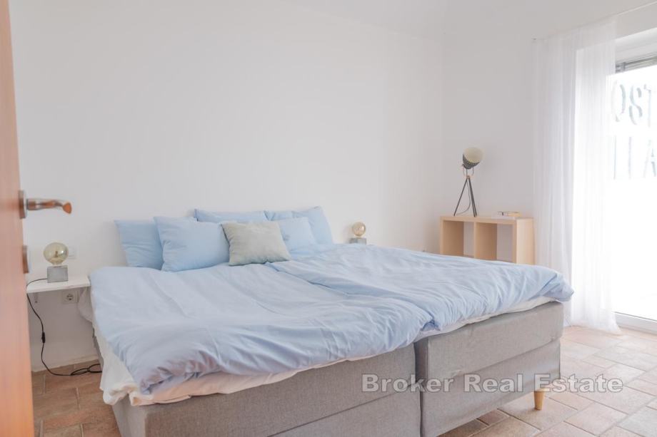 Kuća površine 88 m² sagrađena je na prostranom zemljištu od 2.440 m², kvalitetno je građena i u potpunosti namještena. Ima privatni prostor za kupanje, izlaz na more i vanjsku teretanu. Sastoji se od dvije spavaće sobe, kuhinje, dnevnog boravka, kupaonice, hodnika i terase s infinity bazenom s panoramskim pogledom na more.