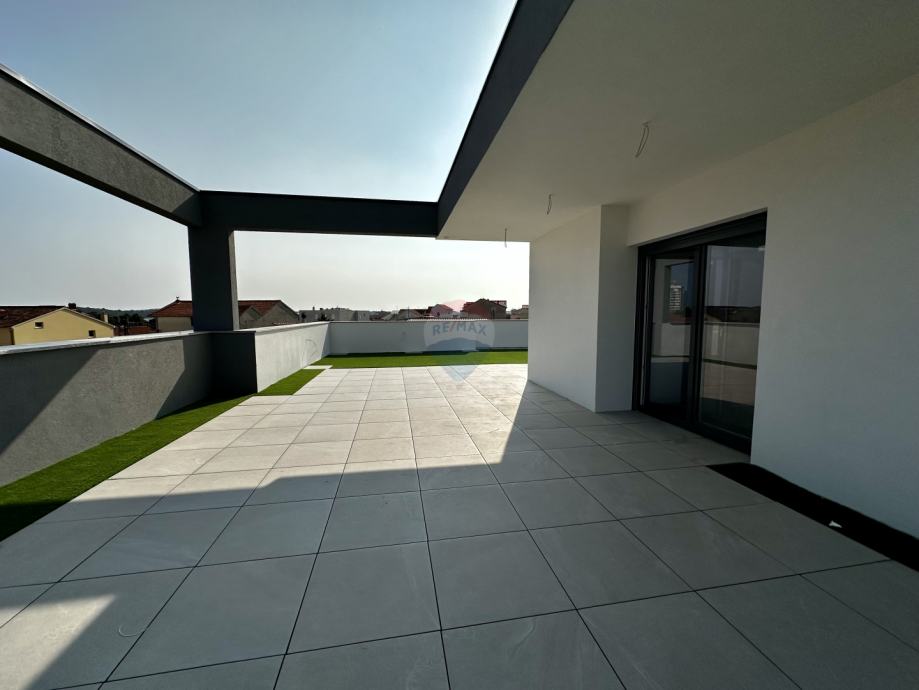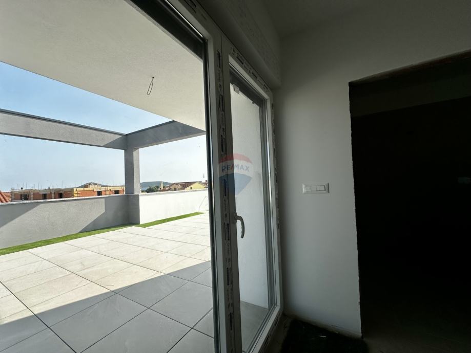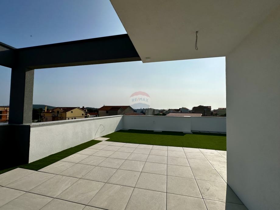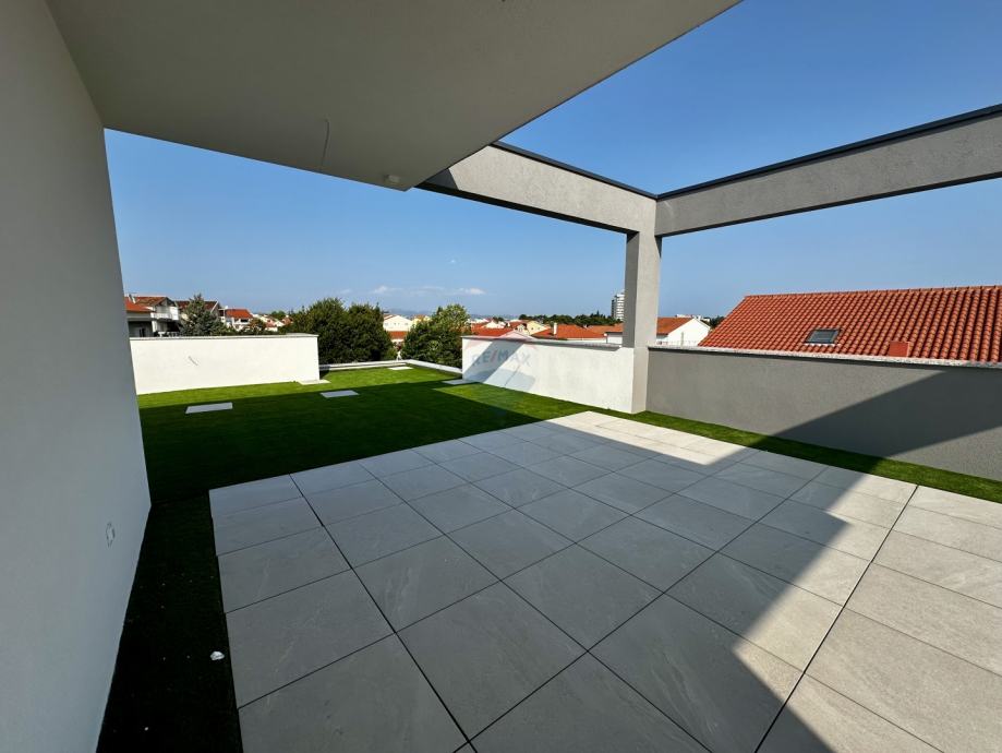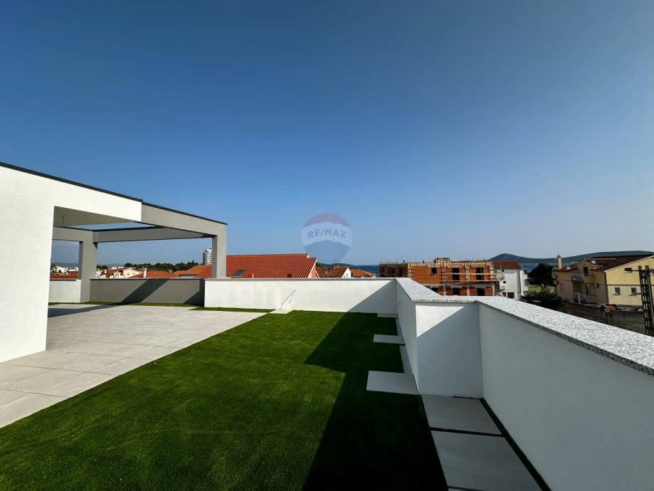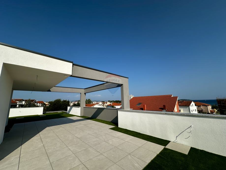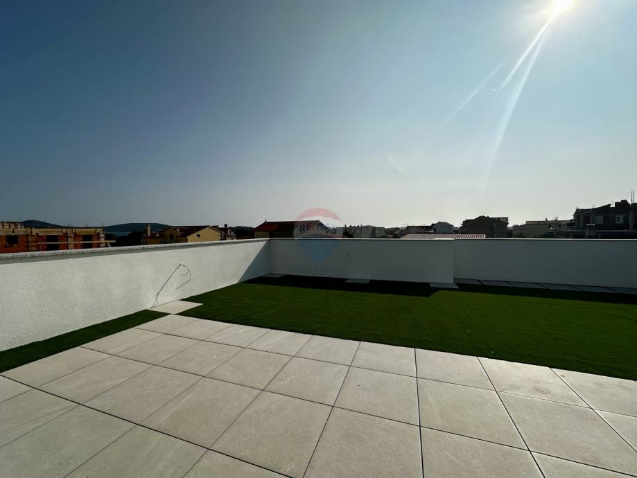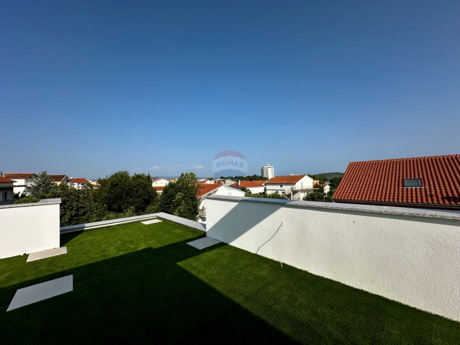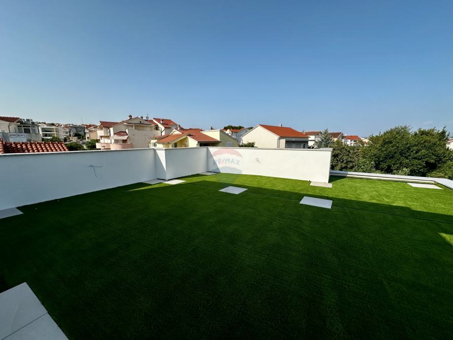 Na drugom katu nalazi se spremište, gostinjski toalet te dijelom natkrivena jedinstvena krovna terasa površine 153.04m2 s koje se pruža prekrasan pogled na more i grad.