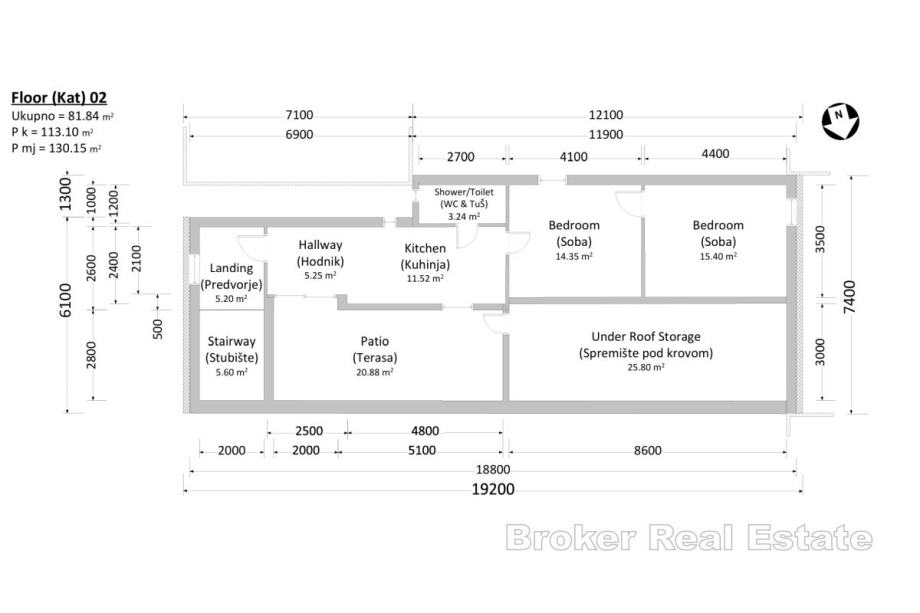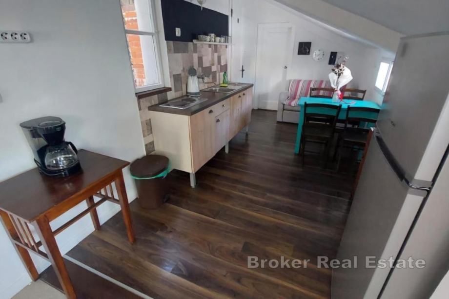 Na drugom katu nalaze se još dvije spavaće sobe, hodnik, kupaonica, kuhinja, predvorje, ostava pod krovom te terasa s prekrasnim pogledom na grad i okolne znamenitosti, što ovaj prostor čini idealnim za opuštanje i uživanje u atmosferi centra.