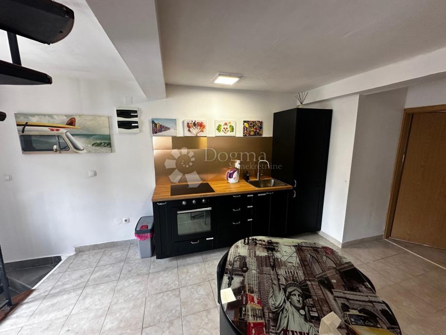 Stan se prostire na dvije etaže: Prva etaža uključuje prostranu kuhinju povezanu s dnevnim boravkom, jednu spavaću sobu i kupaonicu.