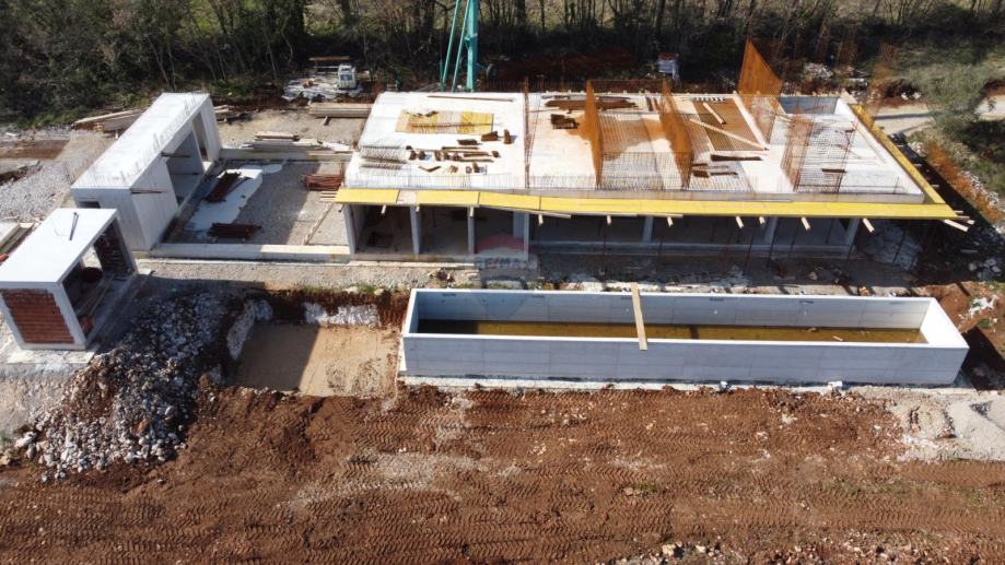Također, u prizemlju se nalazi pomoćna građevina površine 12,2 m2, te natkriveno parkiralište s tri parkirna mjesta površine 70,8 m2. Bazen od 40 m2