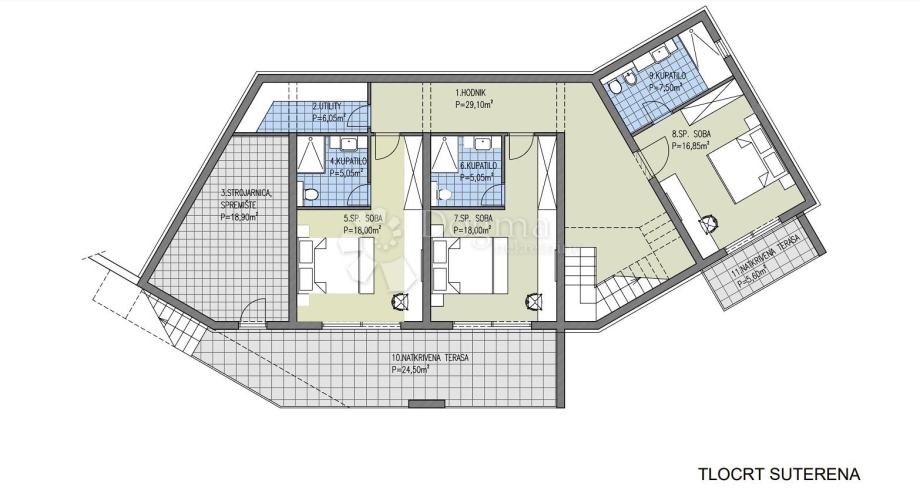 Suteren, koji se prostire na 139,3 m², sadrži tri spavaće sobe, od kojih svaka ima svoju kupaonicu, pružajući dodatnu udobnost i privatnost. Ovaj prostor je savršeno prilagođen za obitelji ili kao savršeno mjesto za goste, omogućujući im potpunu slobodu i udobnost.