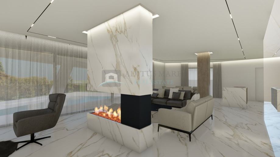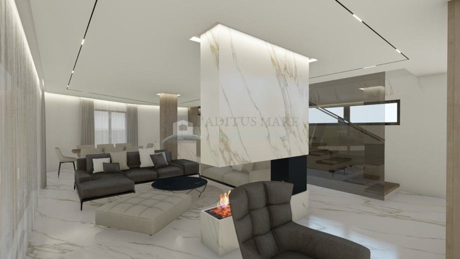 Smještena na mirnoj i prestižnoj lokaciji, ova ekskluzivna vila nudi savršen spoj suvremene elegancije i mediteranskog šarma. Obložena plemenitim talijanskim kamenom – travertinom – odiše bezvremenskom ljepotom i luksuzom, dok je okućnica pažljivo oblikovana i oplemenjena autohtonim mediteranskim biljem i maslinama koje dodatno naglašavaju karakter i privatnost prostora.