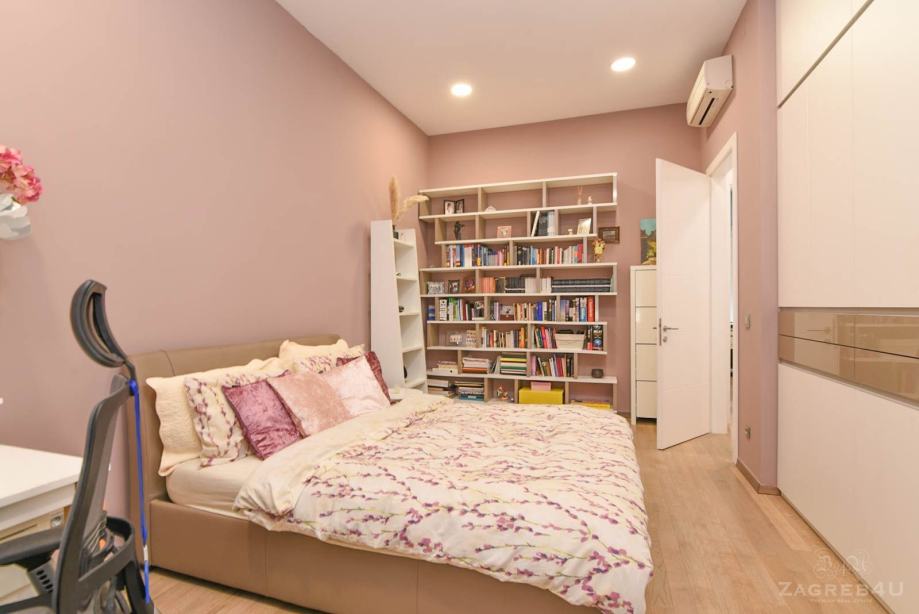 U glavnu spavaću sobu ulazi se iz dnevnog boravka koja uz veliki garderobni ormar koji se nalazi u zasebnoj prostoriji ima i svoju vlastitu kupaonicu (tuš, kada).