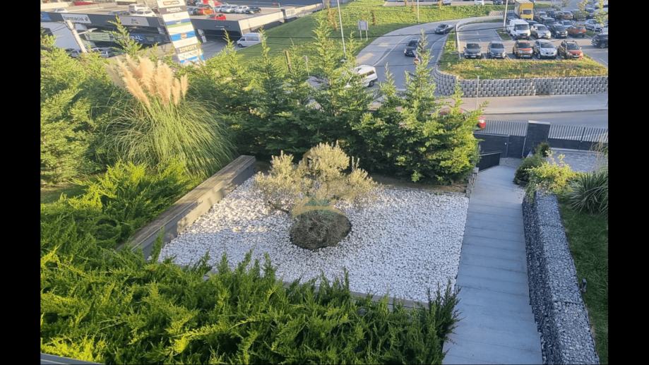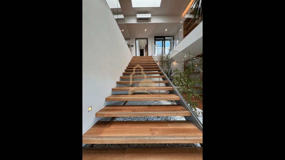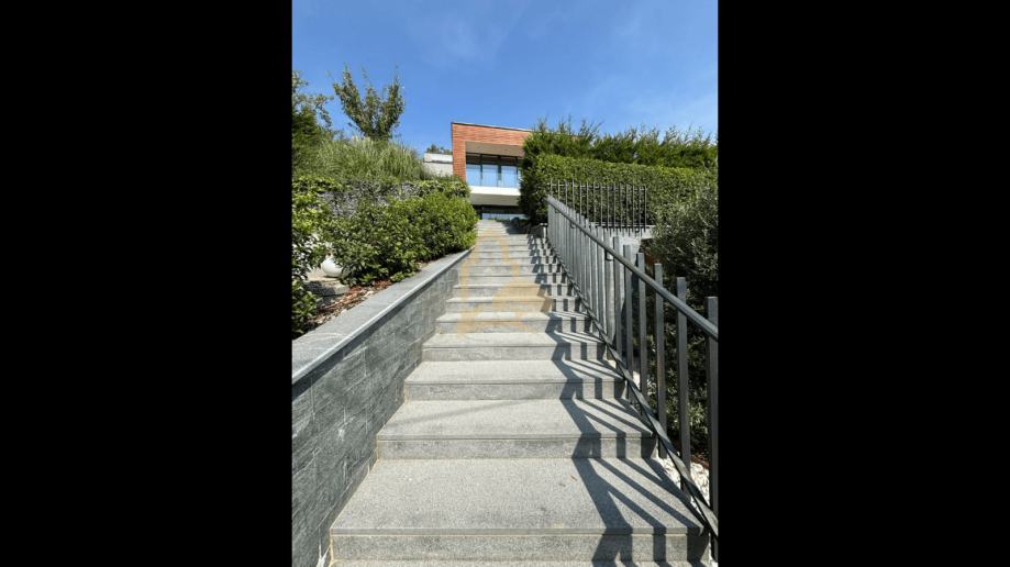 Smještena je na parceli od 1.115 m2 jedinstveno uređene okućnice, s pomno biranim zelenilom koje svojim smještajem i razgranatošću osigurava stanarima privatnost i povezanost s prirodom.
