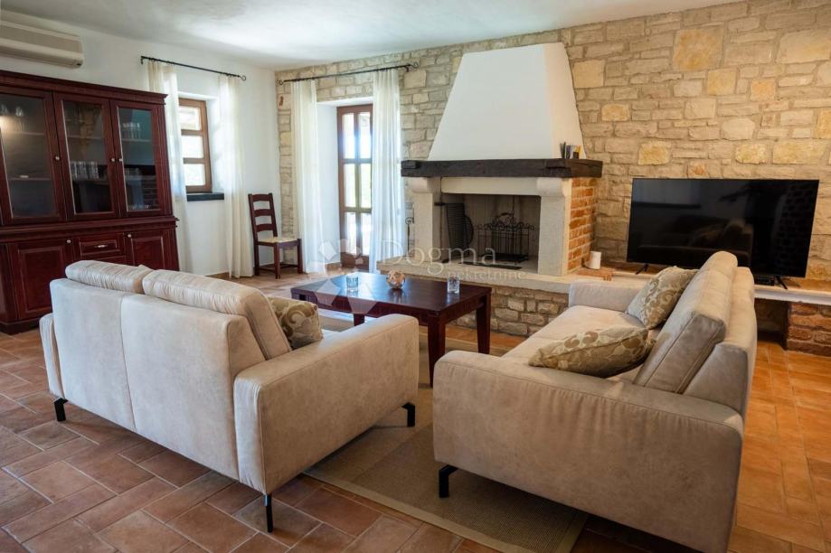 Prodaje se jedna od deset vila u kompleksu u mirnom mjestu Heraki, smještenom oko 15 kilometara od centra Poreča. Villa Fragaria ističe se svojim rustikalnim dizajnom, s daščanim podovima u sobama i keramičkim pločicama u ostalim dijelovima. Stropovi su ukrašeni dekorativnim drvenim gredama, a dnevni boravak ima otvoreni kamin obložen dekorativnim kamenom, što stvara toplu i ugodnu atmosferu.