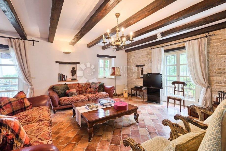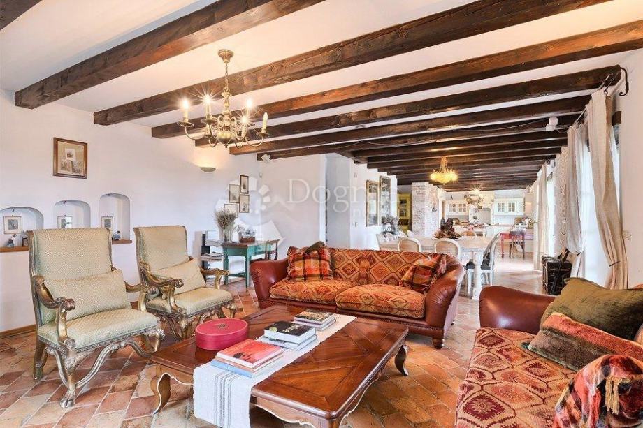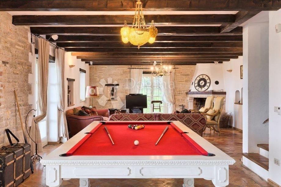 Prizemlje se sastoji od prostranog dnevnog boravka kojega krase krasni detalji poput antiknih lustera i namještaja, ručno rađeni stol za biljar iz Sienne, te udobne Roche Bobois sofe iz Verone.