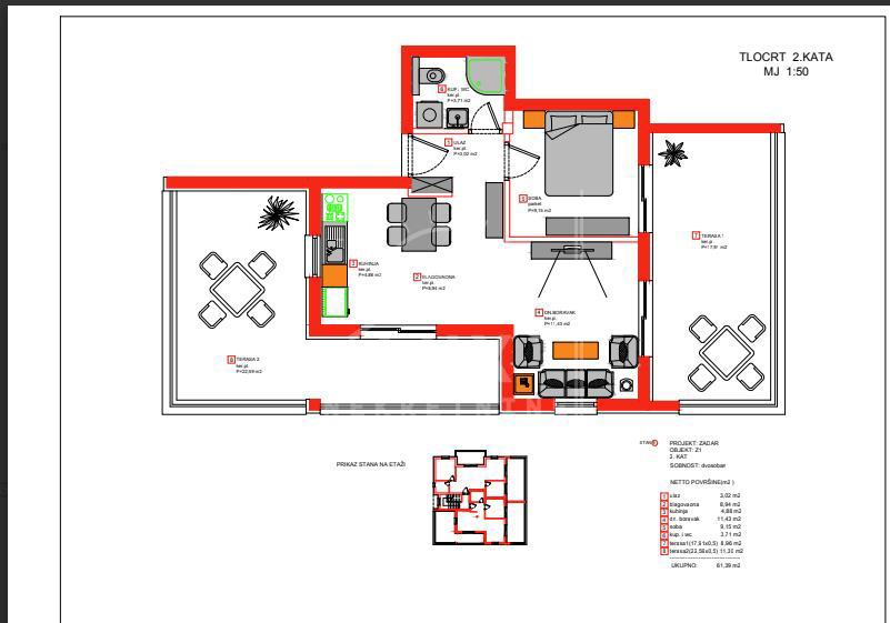 UKUPNO: 61.39 m2.