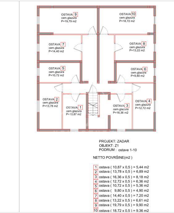 Svaki stan ima svoju ostavu u podrumu zgrade i jedno vanjsko parkirno mjesto.