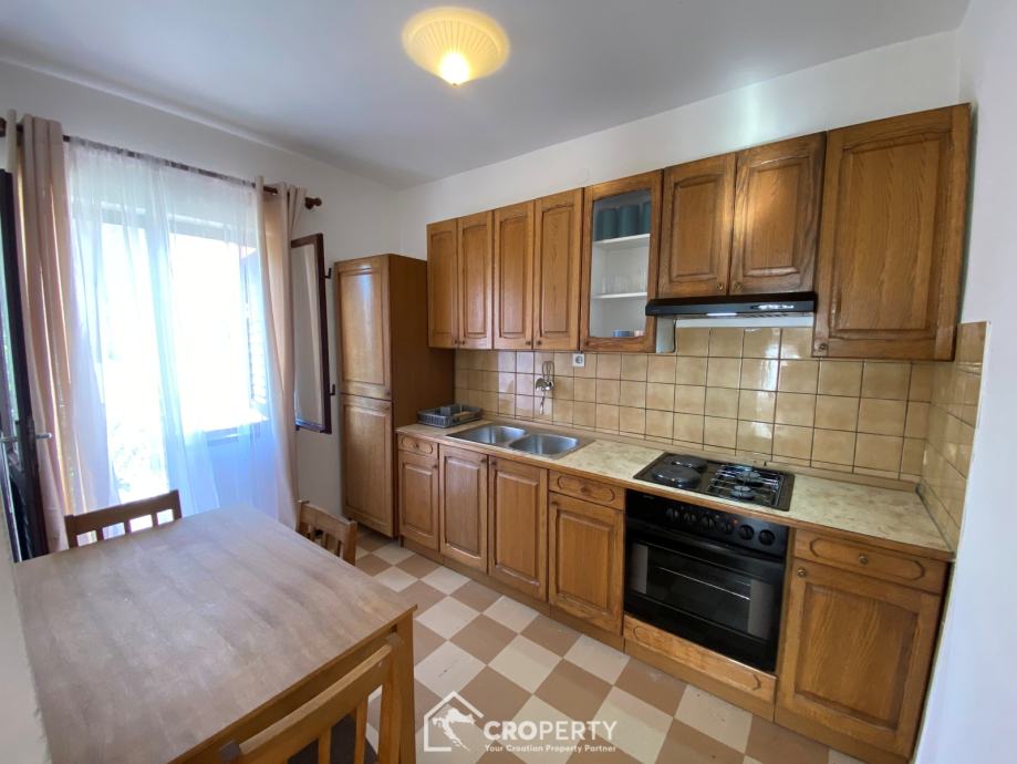 Located on the first floor of a private house, with its own fully separate entrance that ensures privacy and independence, this comfortable one-bedroom apartment of 45 m² is an inviting long-term home in the quieter outskirts of Split. The space has been recently refreshed and is ready for new tenants seeking a peaceful and stable living environment.