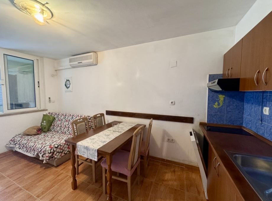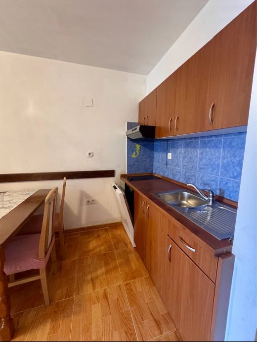 Nudimo u ponudi jednosoban namješten stan u prizemlju stambene zgrade na odličnoj lokaciji u neposrednoj blizini plaže. Stan ukupne površine 44,14m2, sastoji se od: predulaza (4,90m2), hodnika (3,30m2), dnevnog boravka i kuhinje s blagovaoniskim stolom (13,44m2), spavaće sobe (12,47m2), kupaonice (4,02m2), lođe (6.01m2). U cijenu stana uključeno je parking mjesto ispred zgrade.