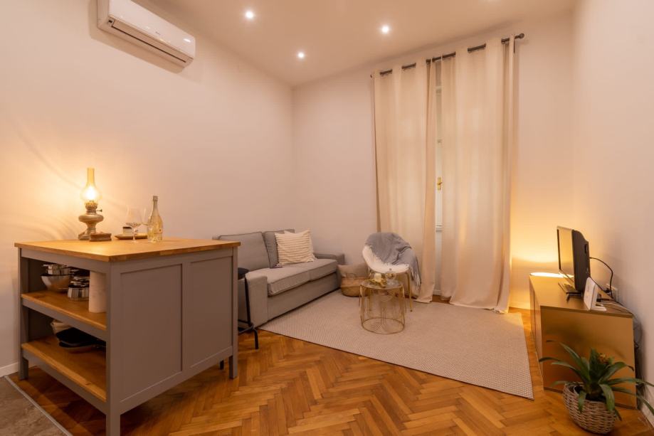 One-room apartment for rent in the heart of the city, in Slavićeva Street. The apartment is located on the first floor, has 33 m2, and consists of one bedroom, kitchen with dining room and living room, and bathroom. It is completely renovated, equipped and air-conditioned. Its greatest advantage is its proximity to the waterfront, the ferry port and all city amenities. The apartment is available from January 1st untill May 1st. Pets are not allowed! The monthly rent is €600. CONTACT: 0915616295 (ANDREA)
