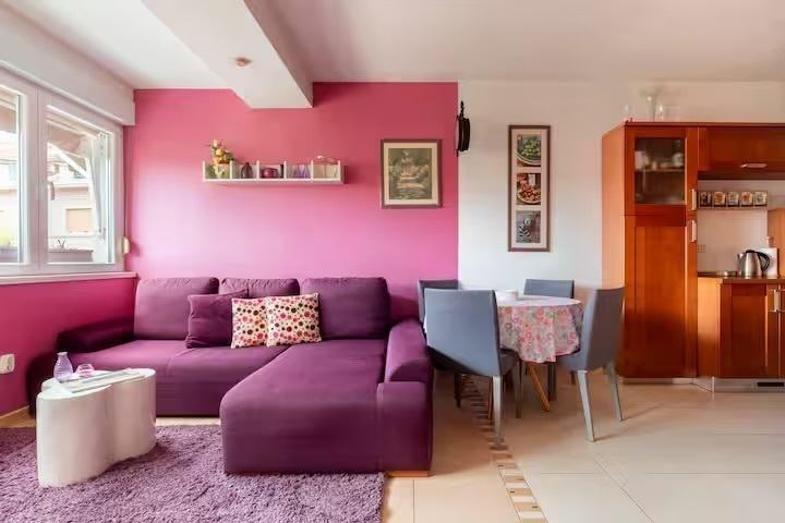 We are renting a one-bedroom apartment in the center of Split. It is located in a residential building and consists of one bedroom with a double bed, a kitchen with a dining room and a living room, a bathroom and a loggia.